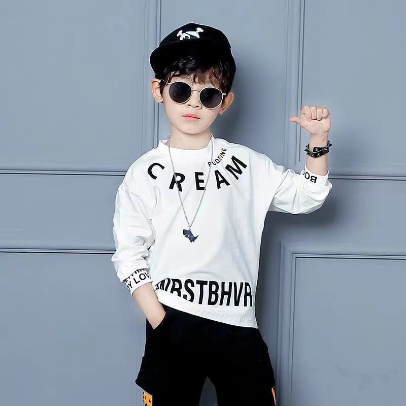 남학생 긴팔 티셔츠 2024 가을 남자를위한 새로운 얇은 중학교 Bottoming 셔츠 서양식 올 매치 라운드 넥 탑 트렌디 T
