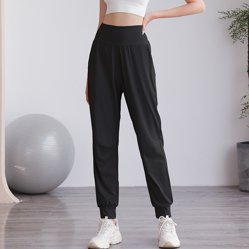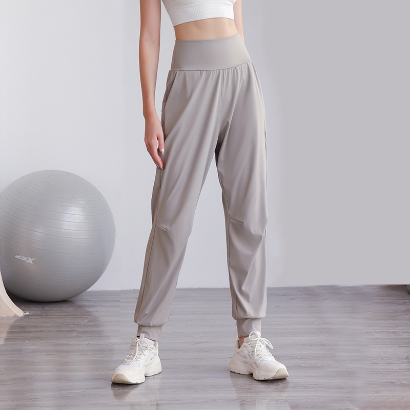 가을과 겨울 나일론 하이 웨이스트 요가 스포츠 바지 여성용 느슨한 슬리밍 캐주얼 러닝 트레이닝 피트니스 발 땀 바지