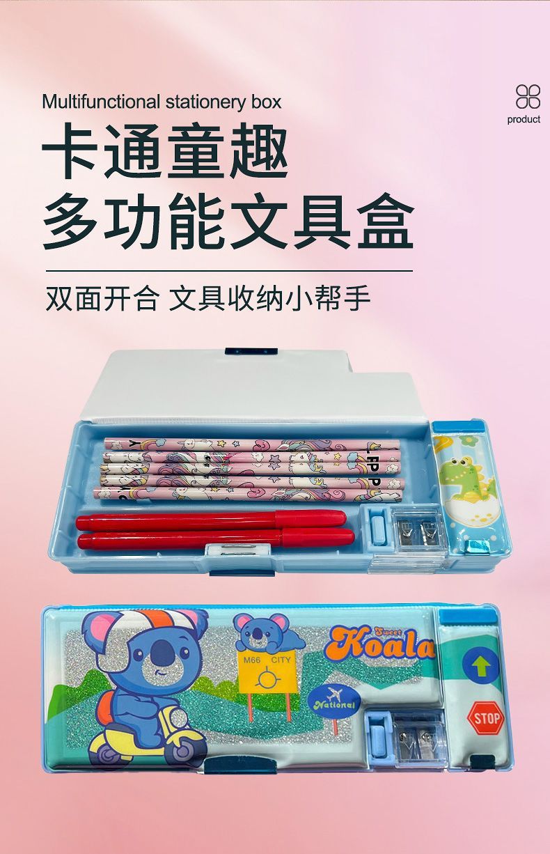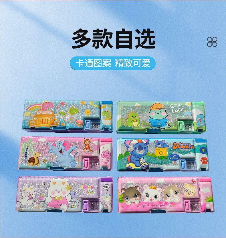 연필 깎이 대용량 문구 상자 남성 및 여성용 다기능 필통 만화 이중 개방 문구 보관 상자 학생스토어 가기
