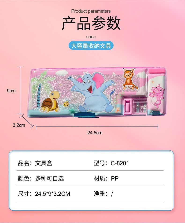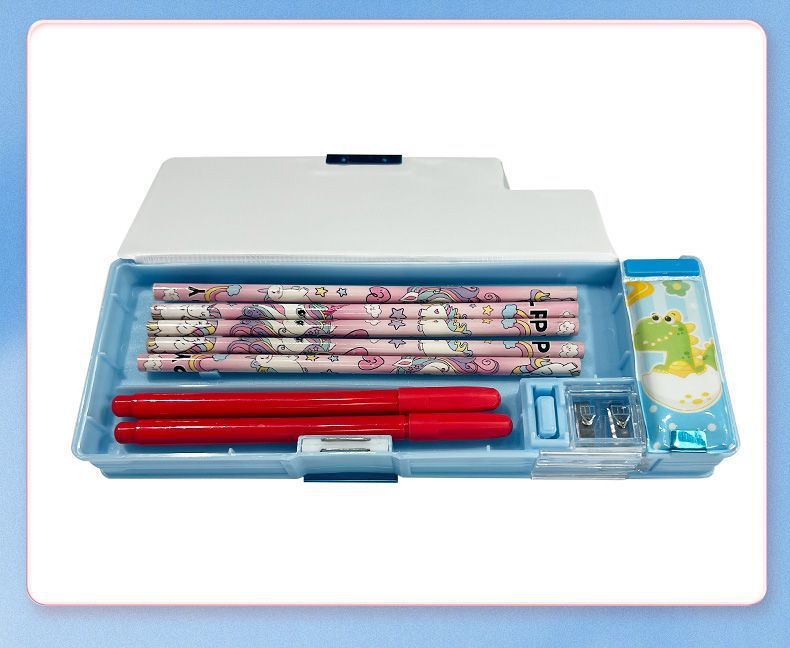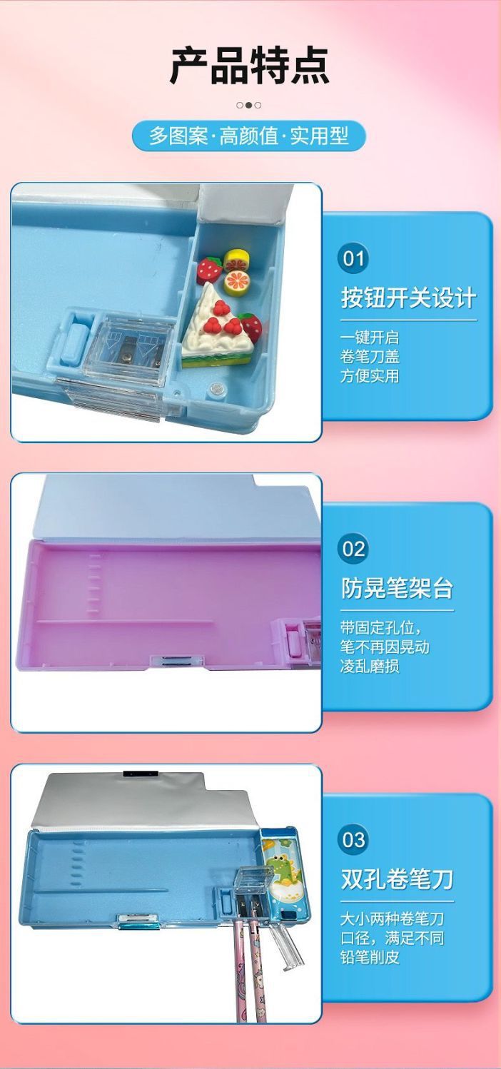 연필 깎이 대용량 문구 상자 남성 및 여성용 다기능 필통 만화 이중 개방 문구 보관 상자 학생
