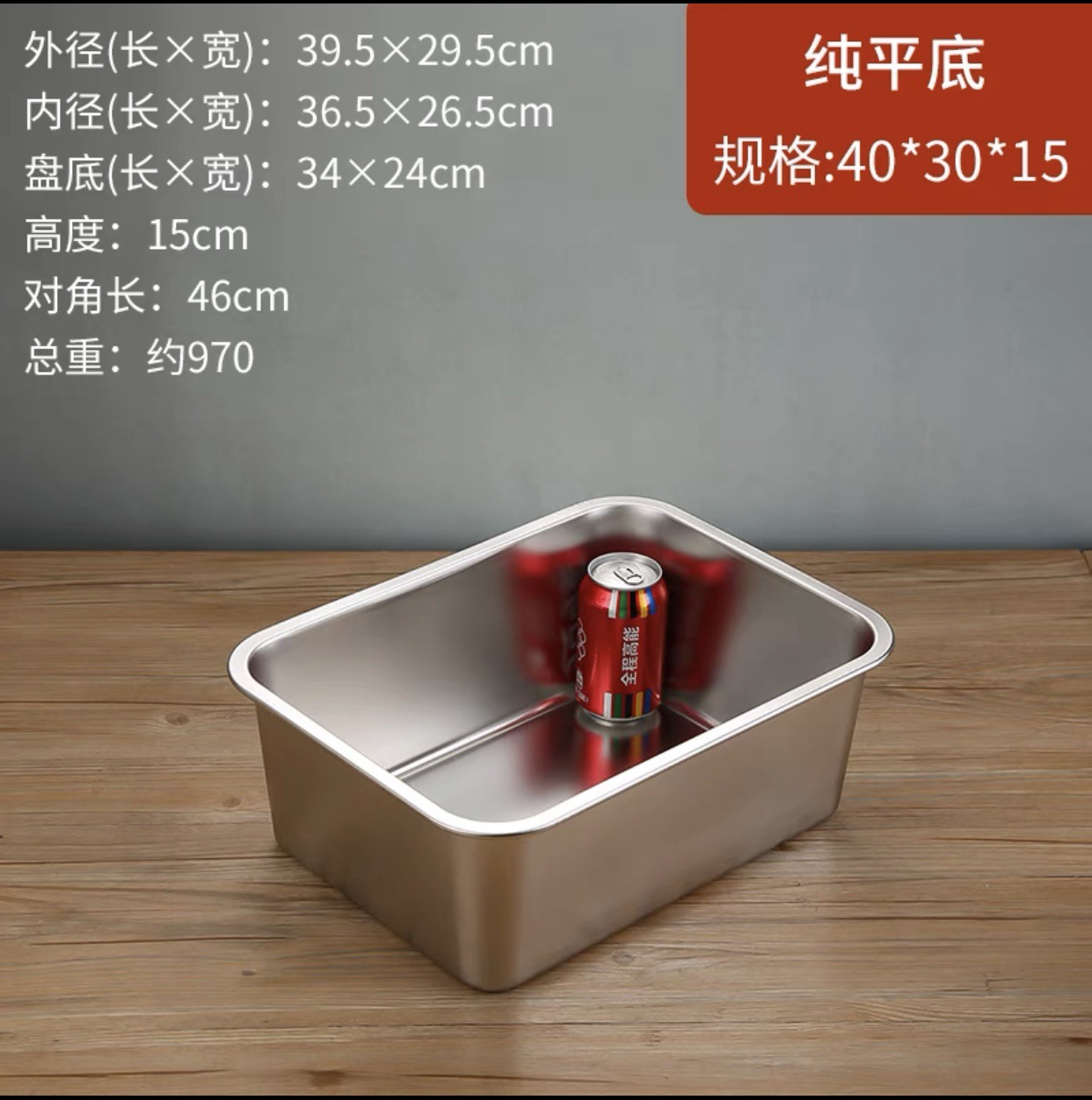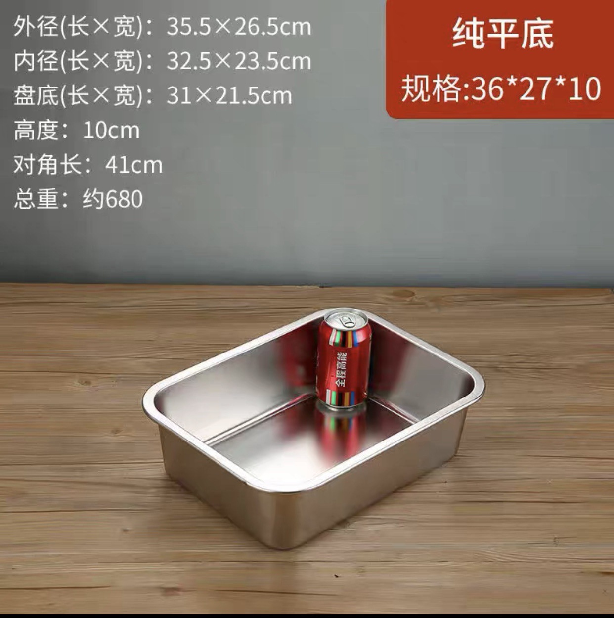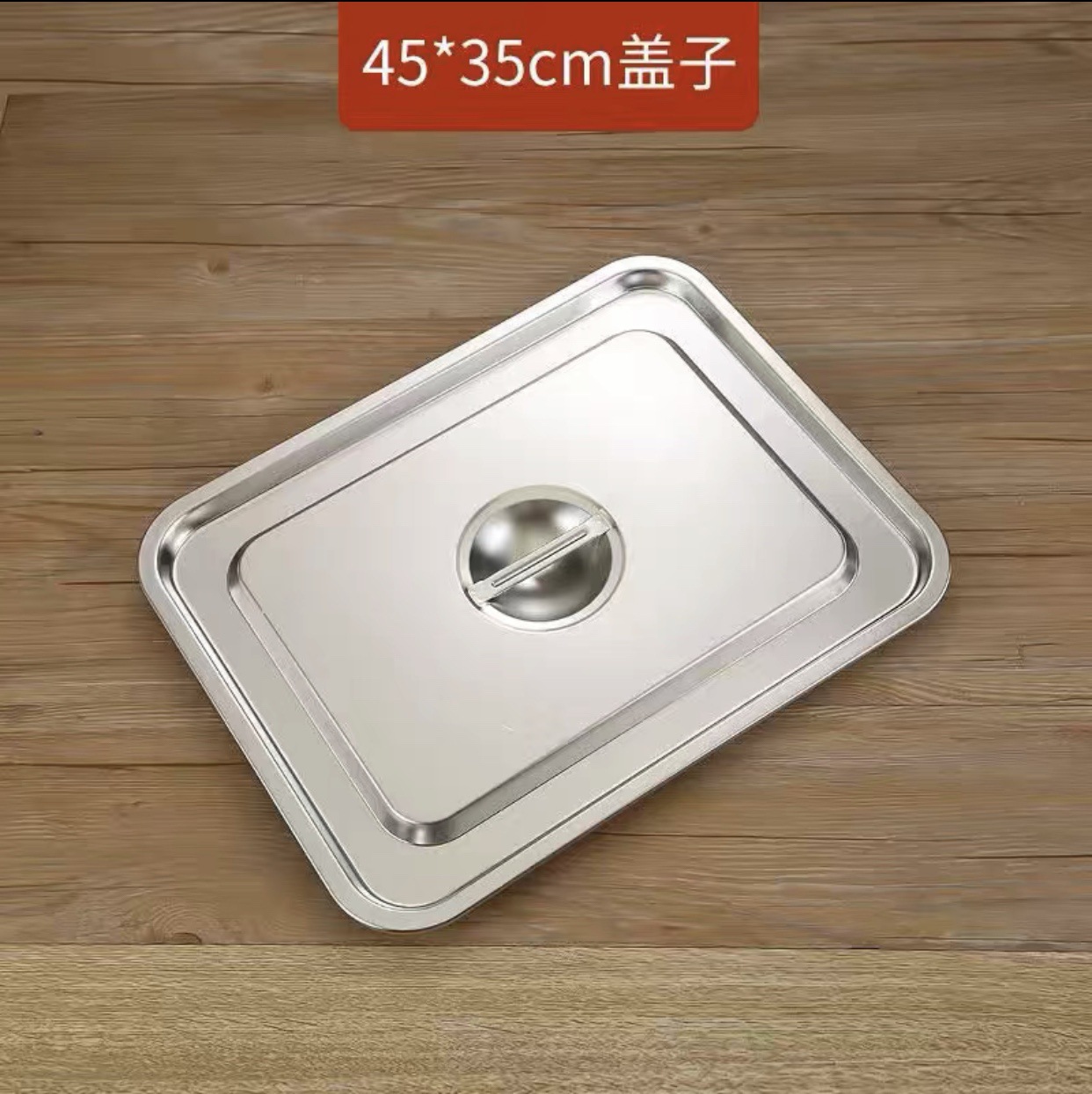 304 스테인레스 스틸 스퀘어 분지 직사각형 스퀘어 플레이트 뷔페 부분 분지 딥 트레이 패스트 푸드 야채 분지 뚜껑 스퀘어 박스스토어 가기