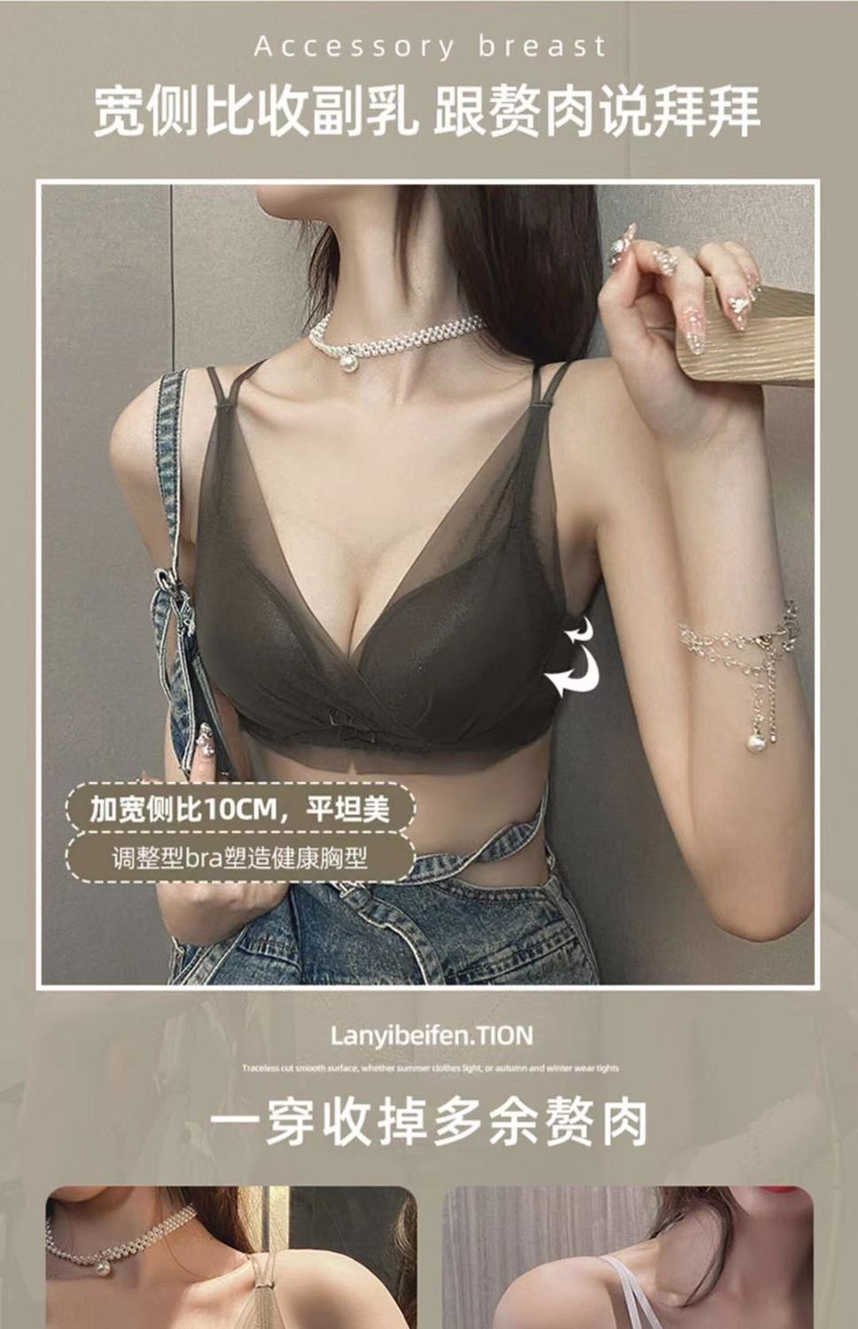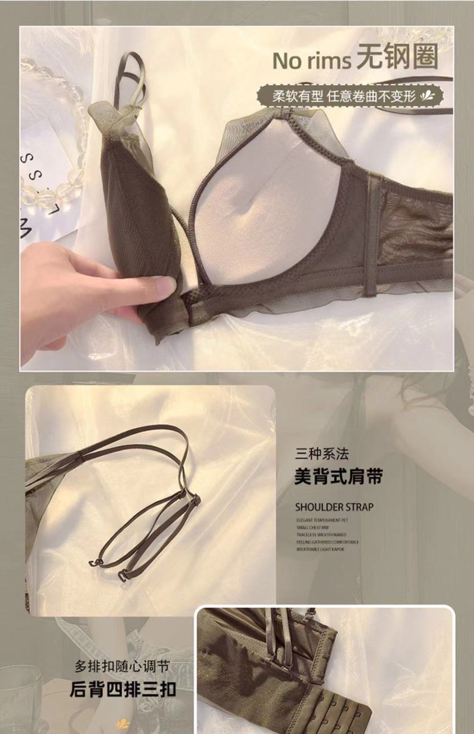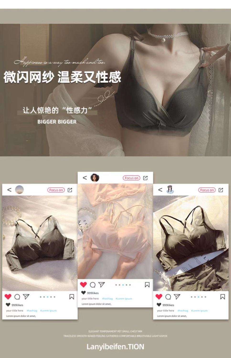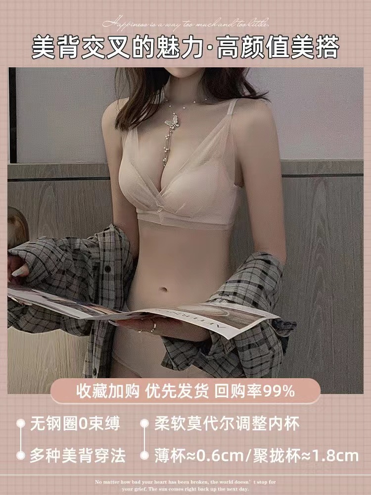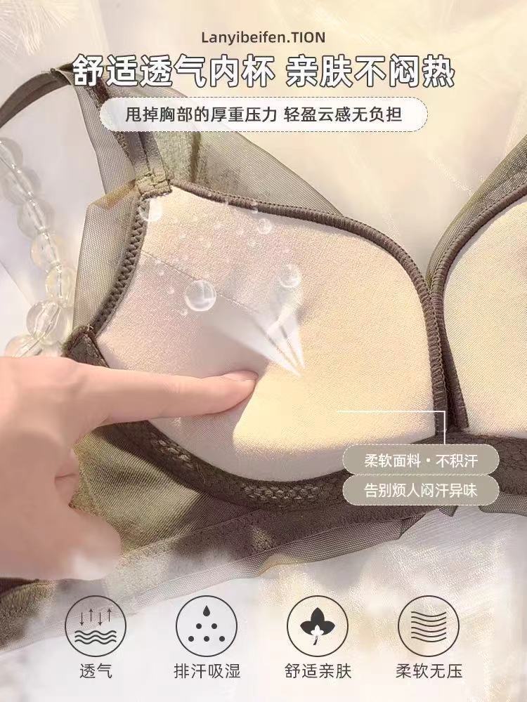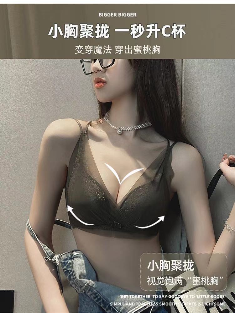 작은 가슴 푸시 업 속옷 여성용 Xia Mei 백 섹시한 소녀의 새로운 수집 액세서리 유방 림이없는 메쉬 브래지어 두께 옵션스토어 가기