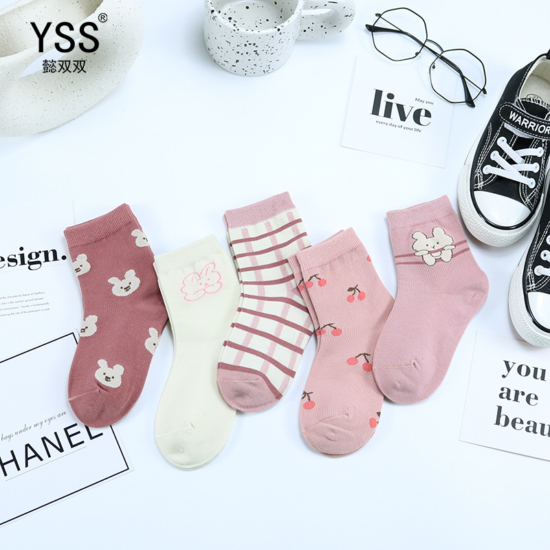 어린이 더블 양말 가을과 겨울 새로운 만화 토끼 송아지 양말 핑크 소녀 패션 양말을 한국 면화를 빗질했습니다.스토어 가기