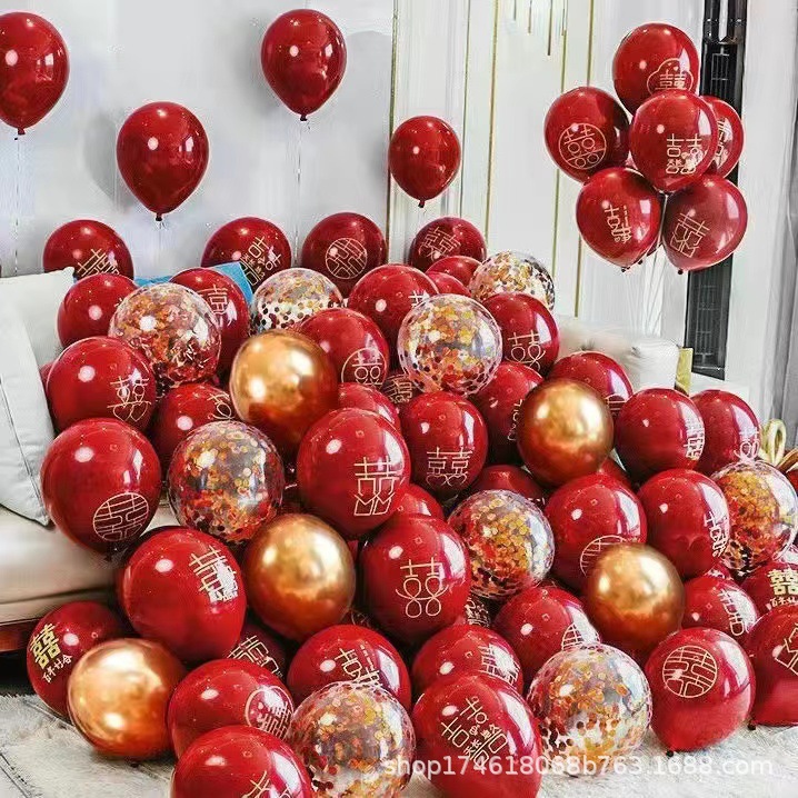 결혼식 풍선, 웨딩룸 장식용, 장면 배치, 두꺼운 '합'자, 보석 빨간색, 결혼식 전용, 축제적인 웨딩