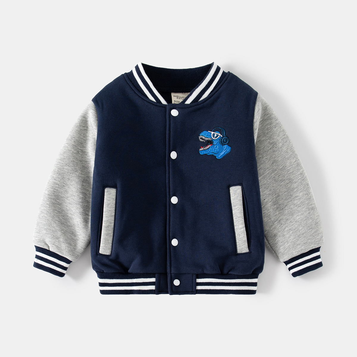 만화 공룡 새로운 소년 기모 야구 세트 유행 어린이 캐주얼 재킷 긴 소매 면 어린이 스웨터
