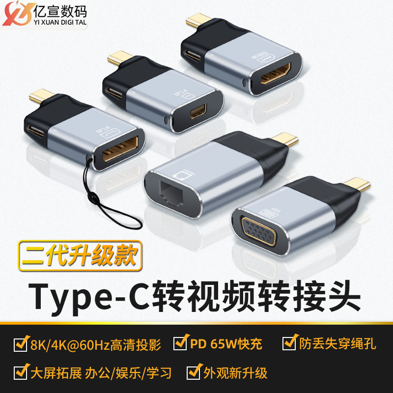 국경 유형-c 여성 HDTV 컴퓨터 TV 모니터 어댑터 4K @ 60Hz DP1.4 HD 변환
