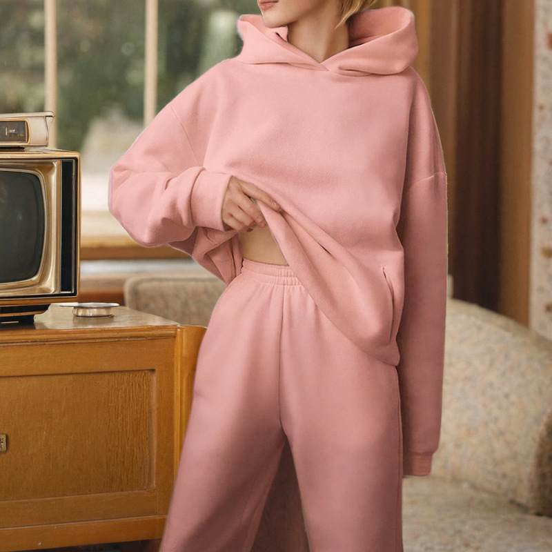 2025 아마존 여성복 단색 캐주얼 패션 스포츠 바지 투피스 세트 스웨트셔츠 세트 여성 겨울스토어 가기