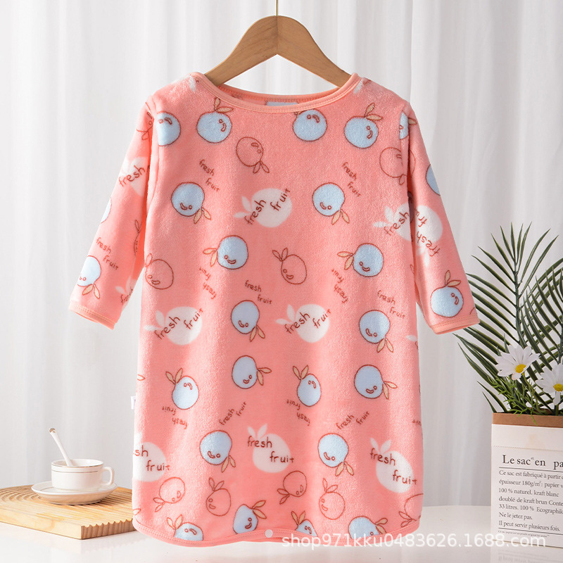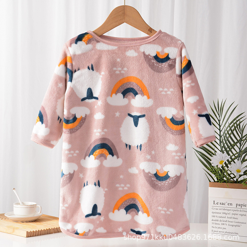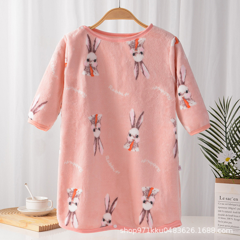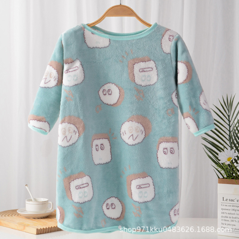 어린이 플란넬 잠옷 결합 가을과 겨울 아기의 양면 벨벳 가정용 옷 소년과 소녀 두꺼운 잠옷 따뜻한 목욕 가운