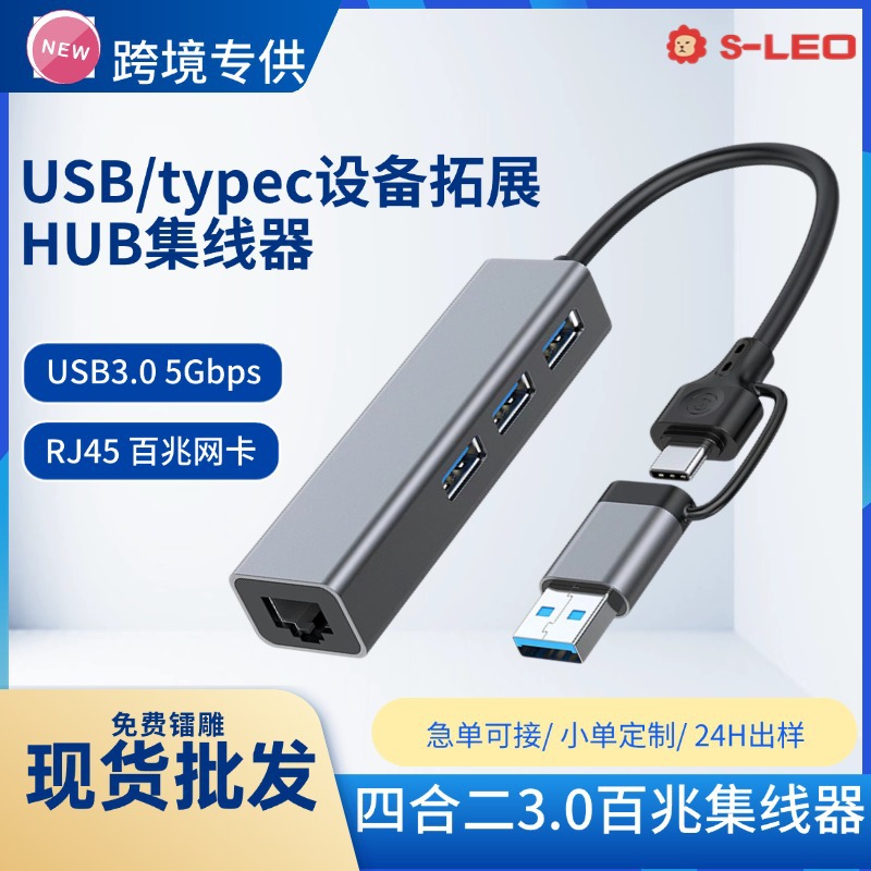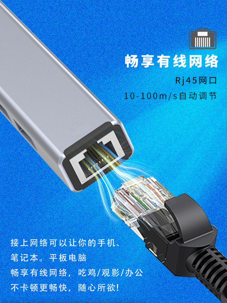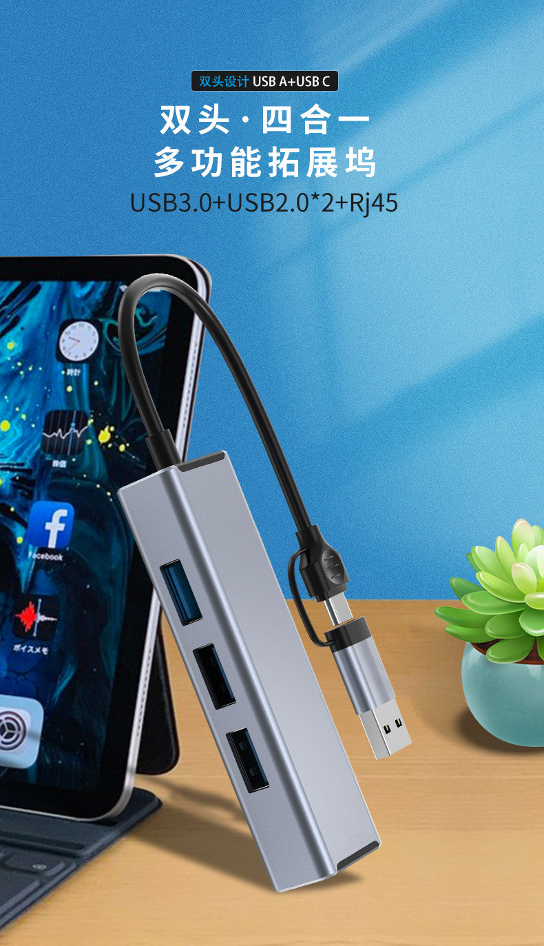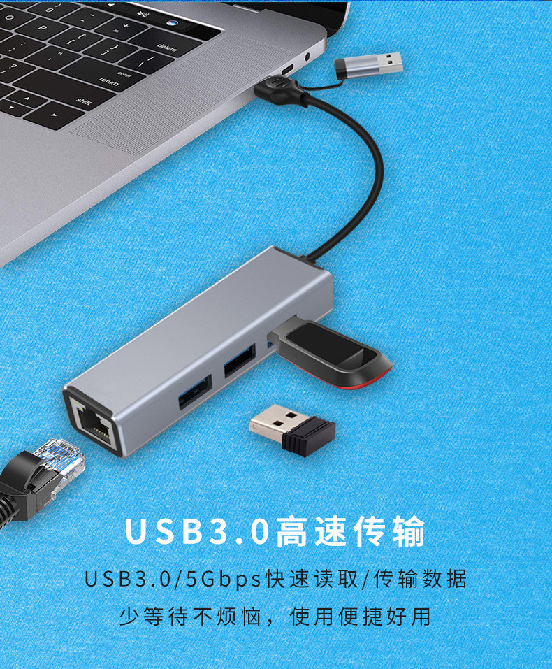 电脑usb扩展器 typec拓展坞拓展坞分集线器网卡rj45二合一多转接