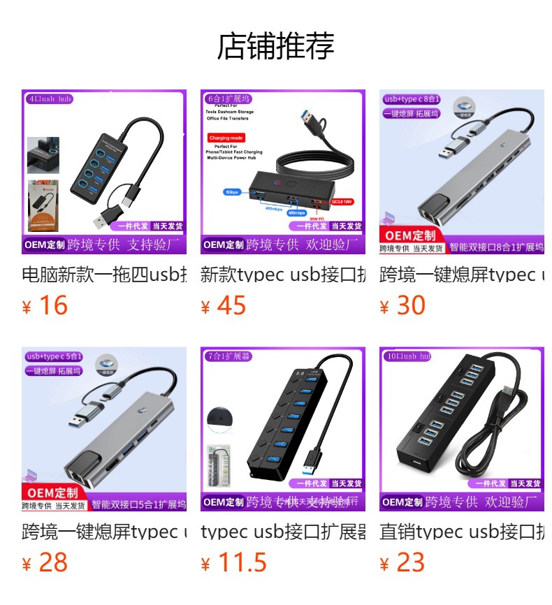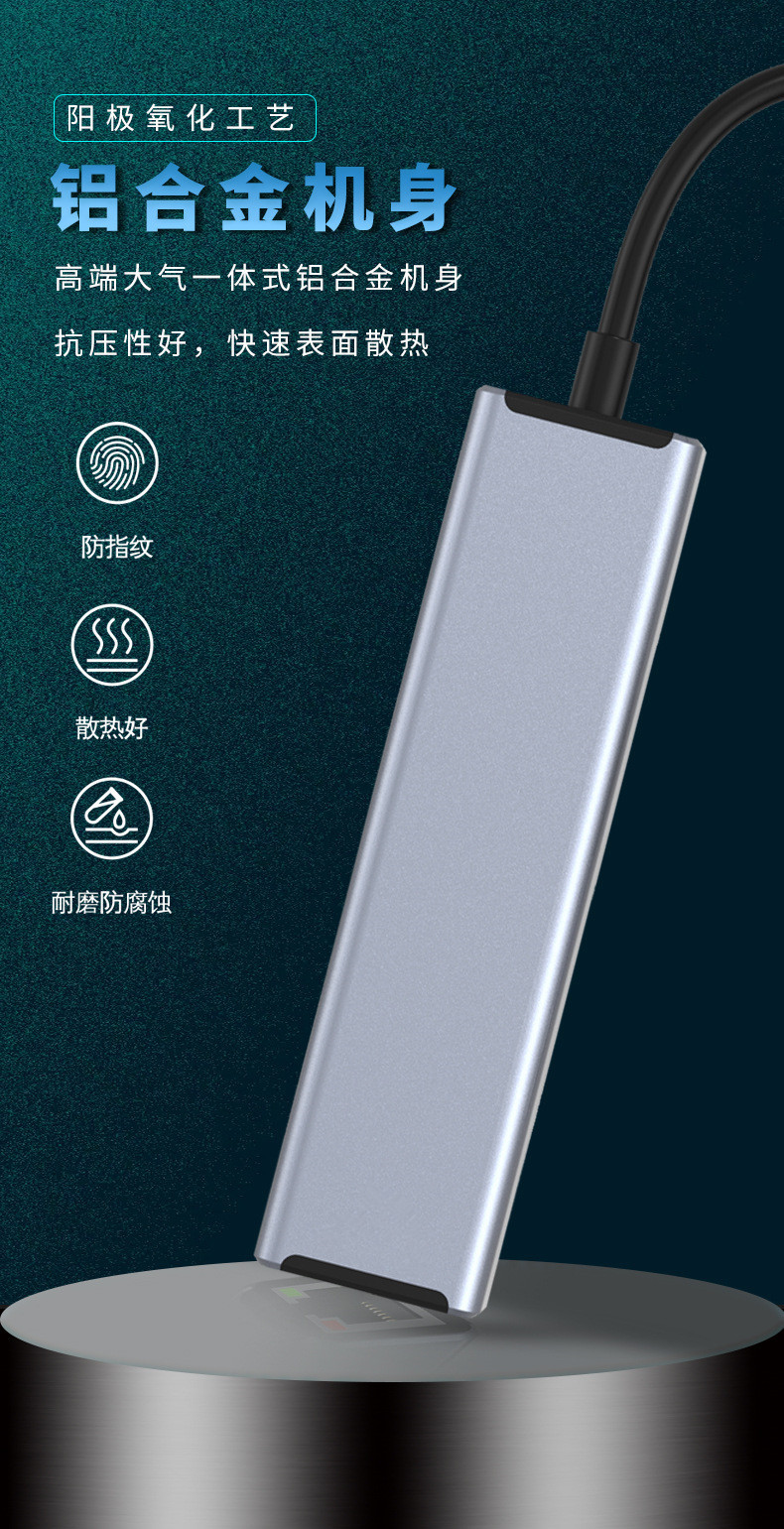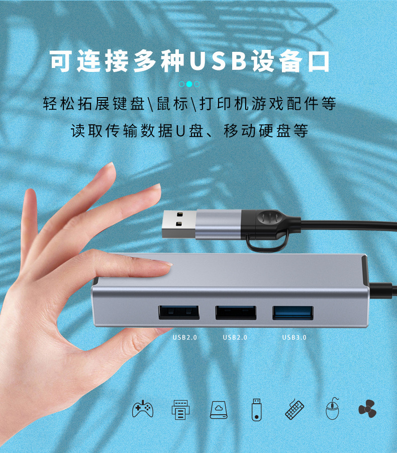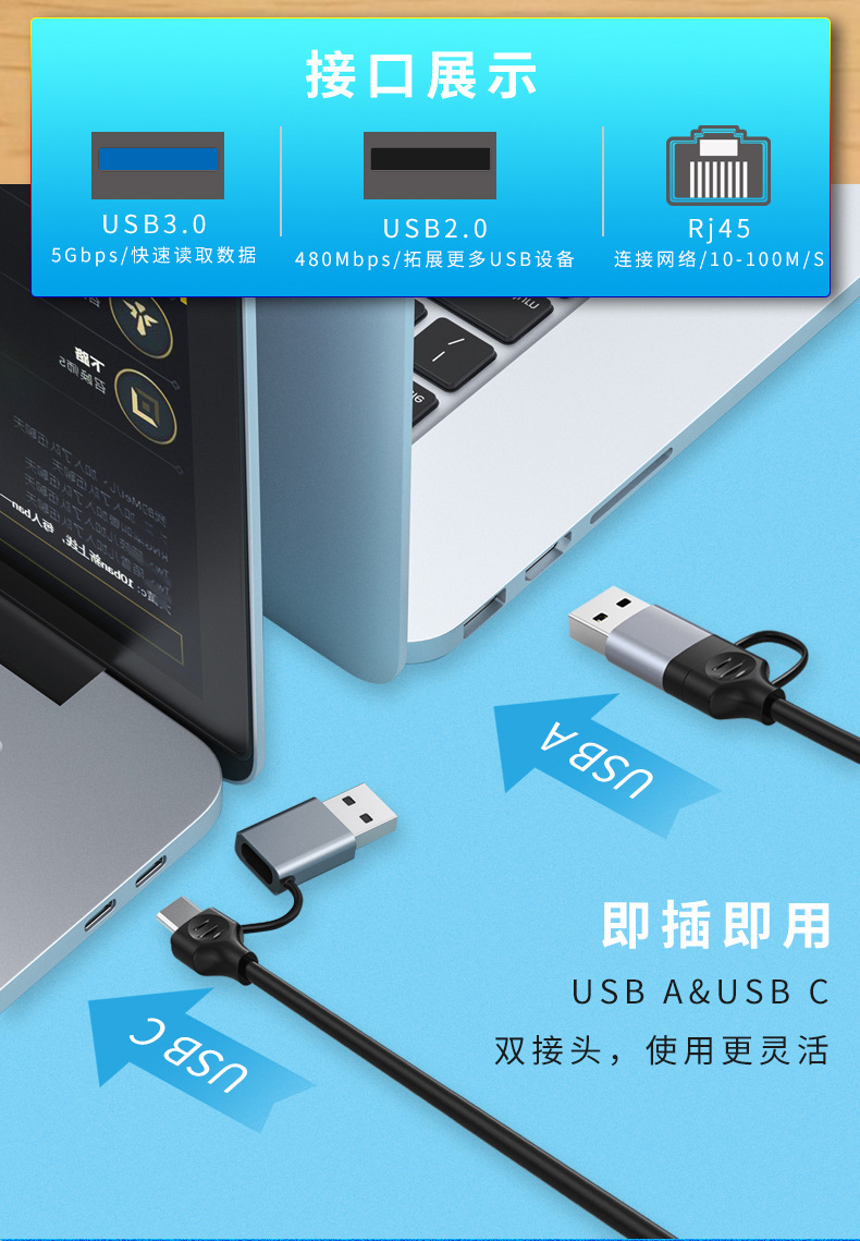 电脑usb扩展器 typec拓展坞拓展坞分集线器网卡rj45二合一多转接