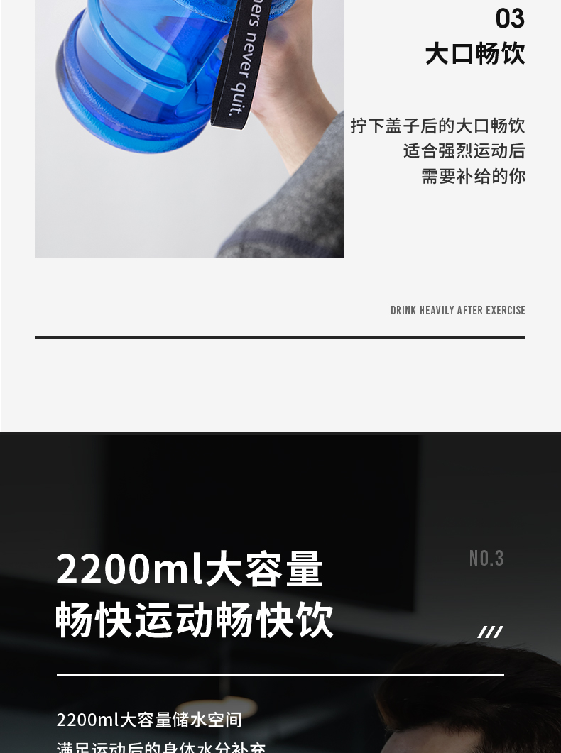 2.2 리터 피트니스 워터 컵 여자 스포츠 남자 여름 대용량 플라스틱 톤 배럴 톤 대형 주전자 2000ml 컵스토어 가기