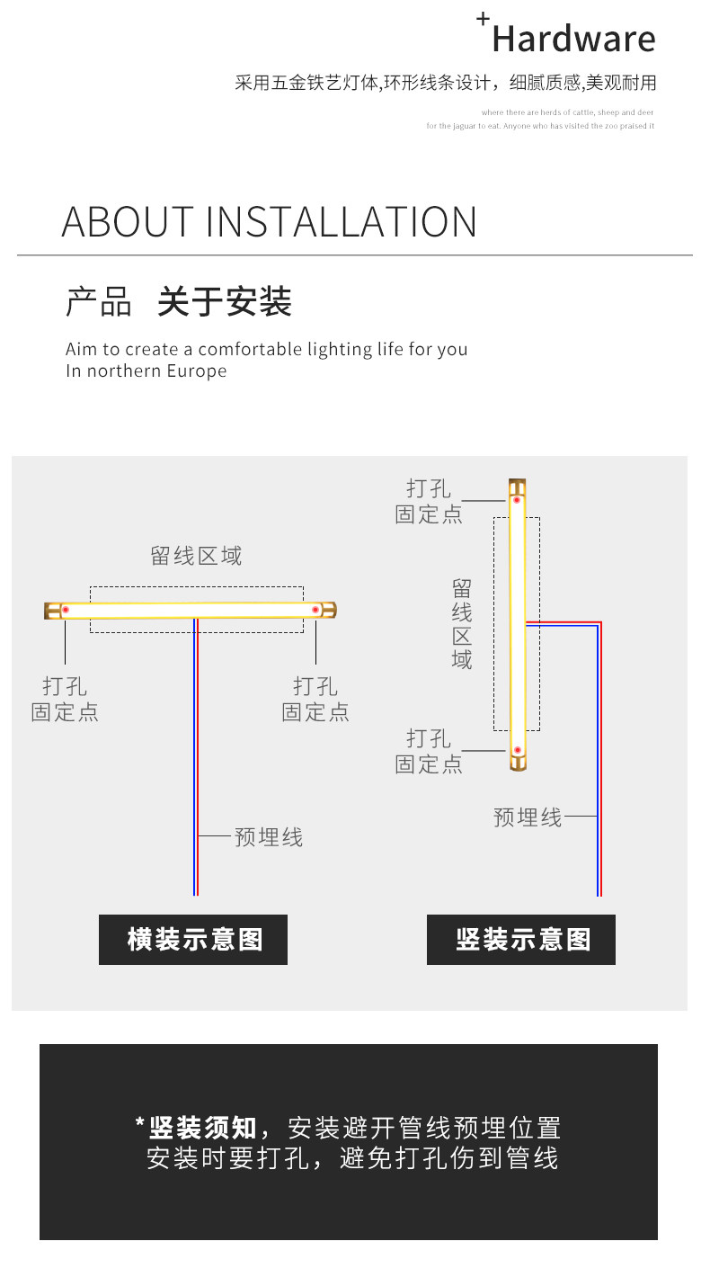 • 긴 80cm-LED 따뜻한 빛-블랙 골드 프레임-[실내 전기]]