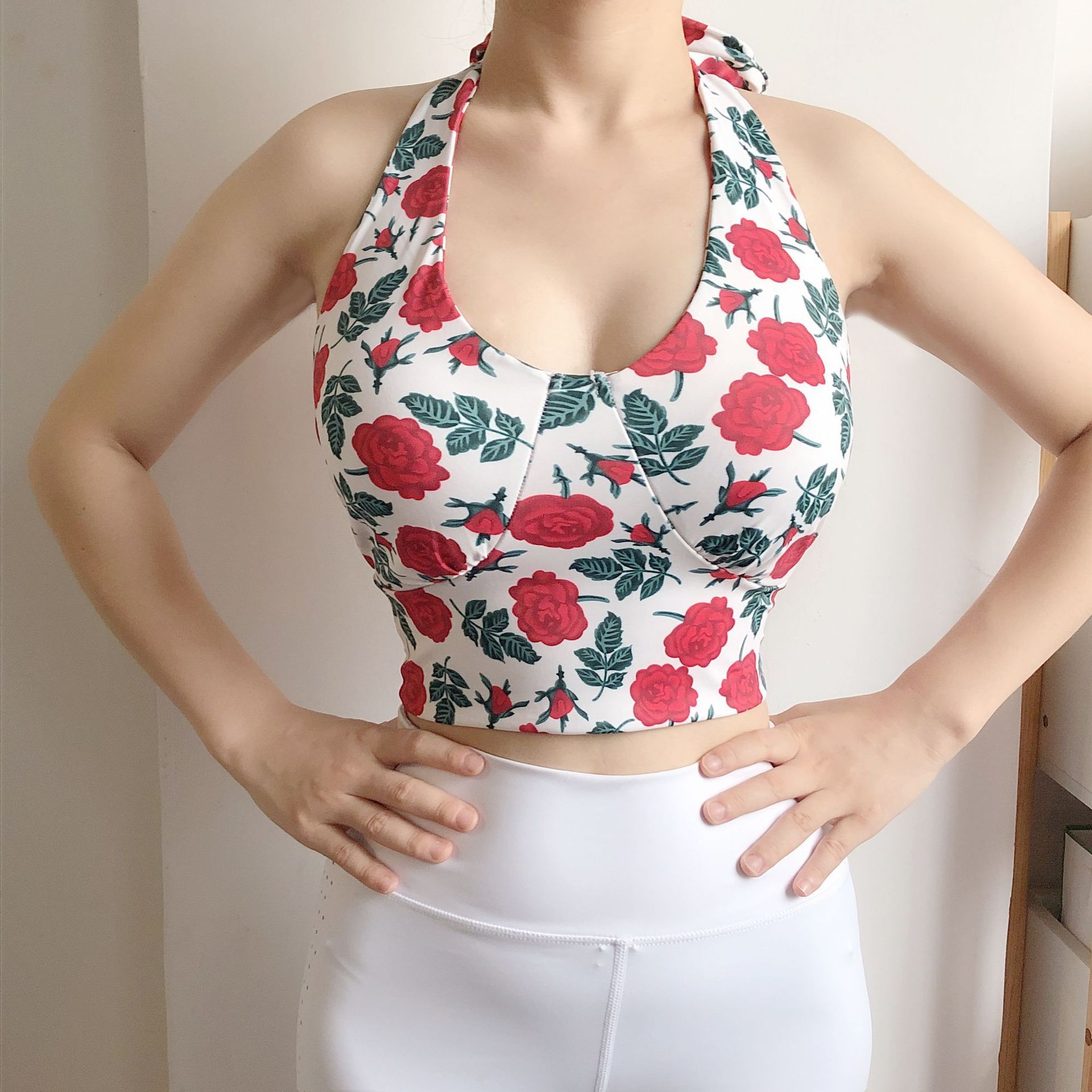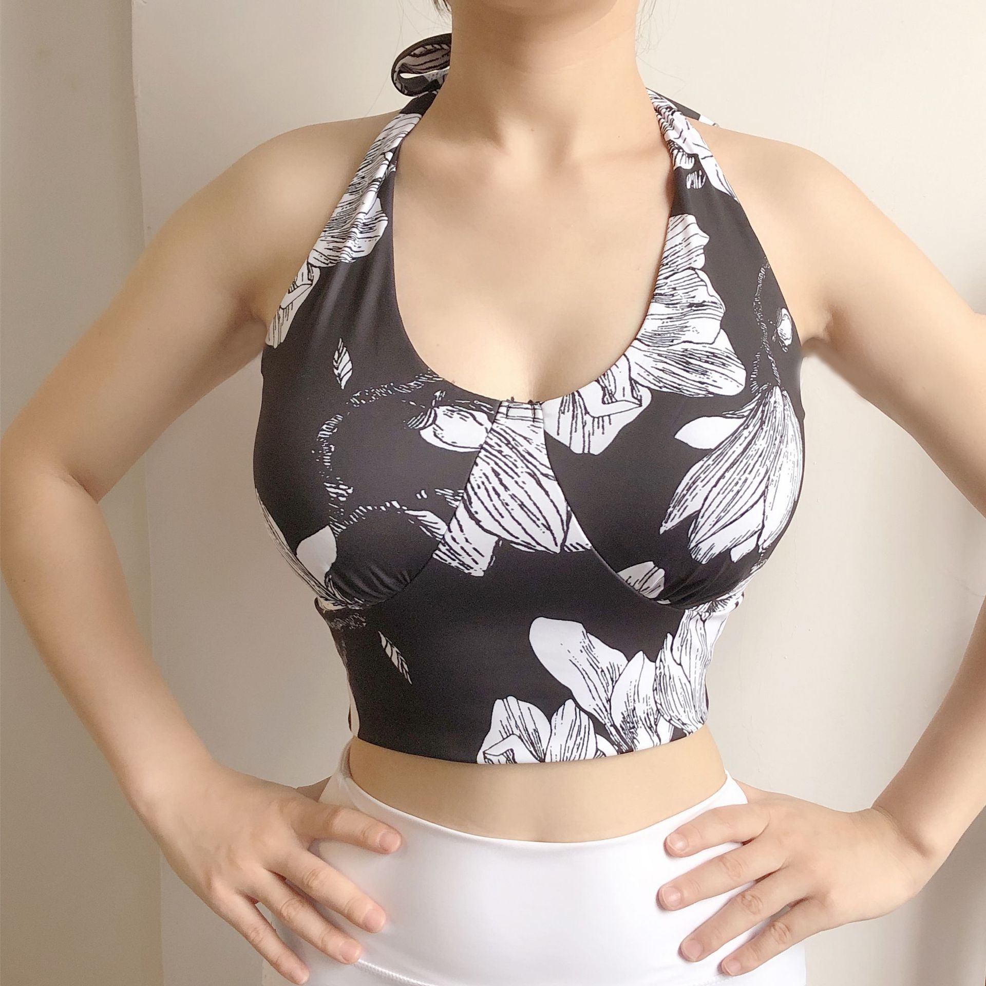 새로운 여성용 스포츠 브라 프린트 시리즈, 홀터넥 끈, 충격 방지, 푸쉬업, 아름다운 등 라인, 러닝, 피트니스, 요가복스토어 가기