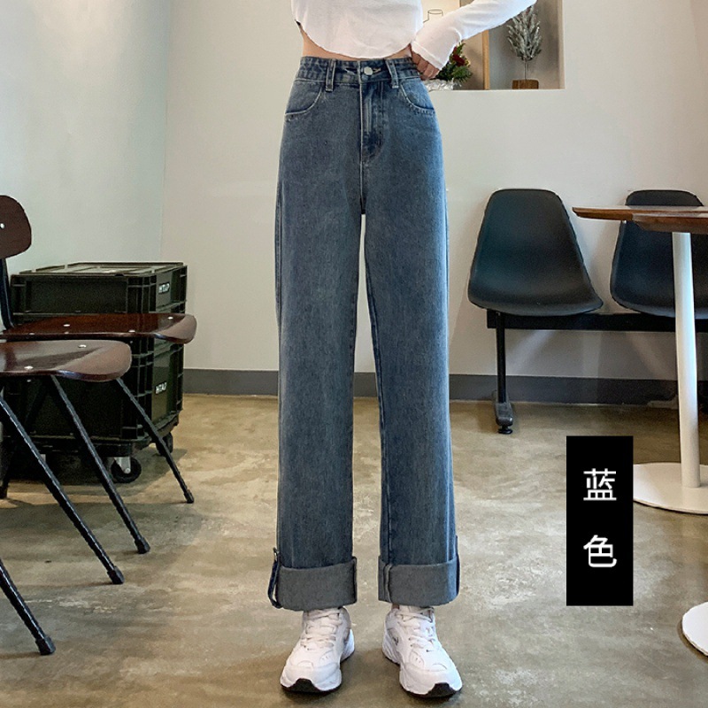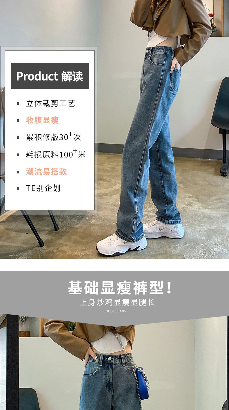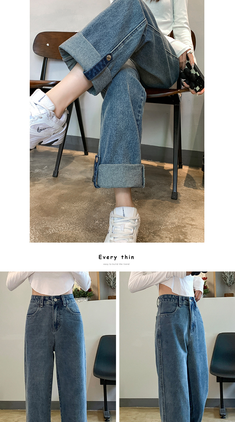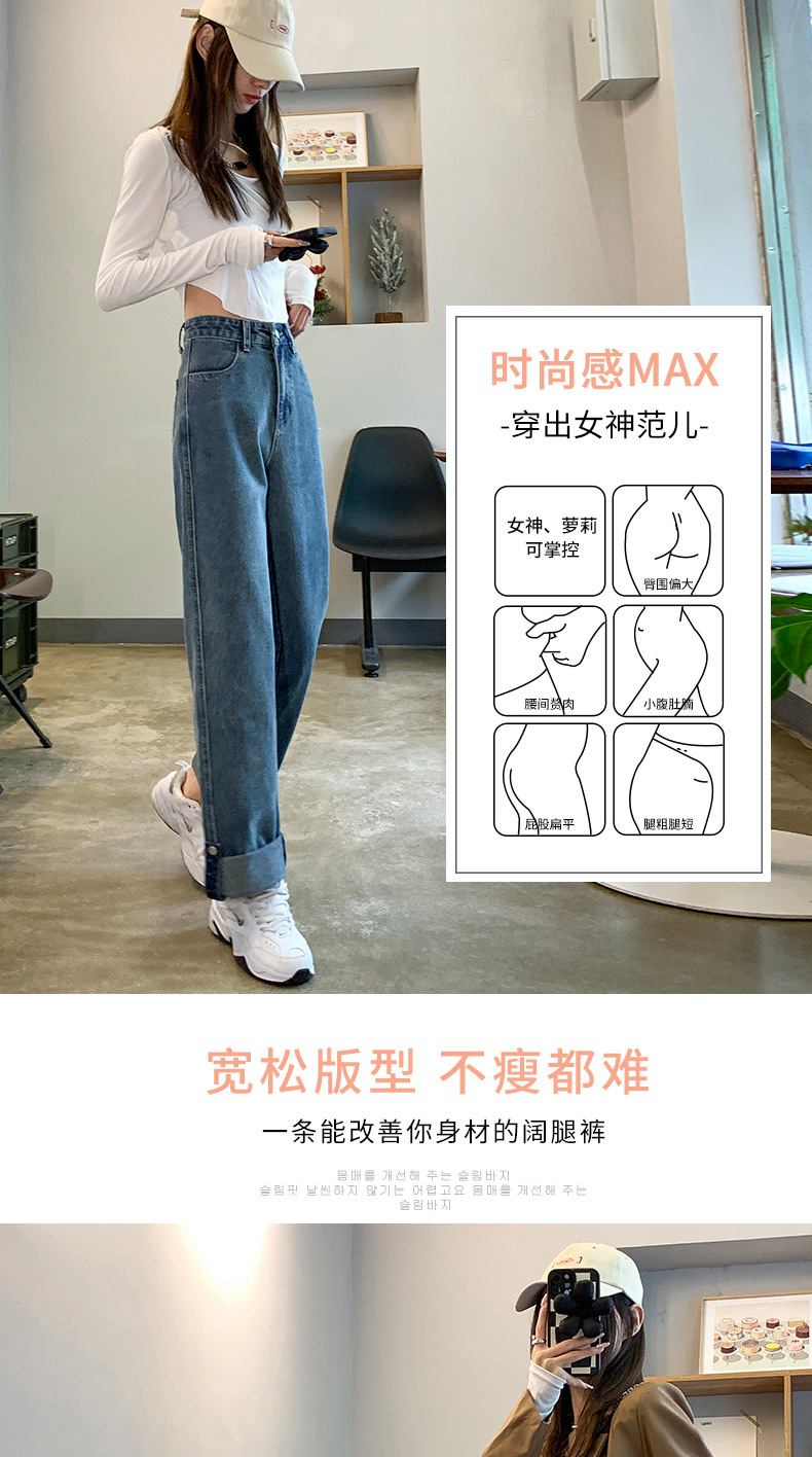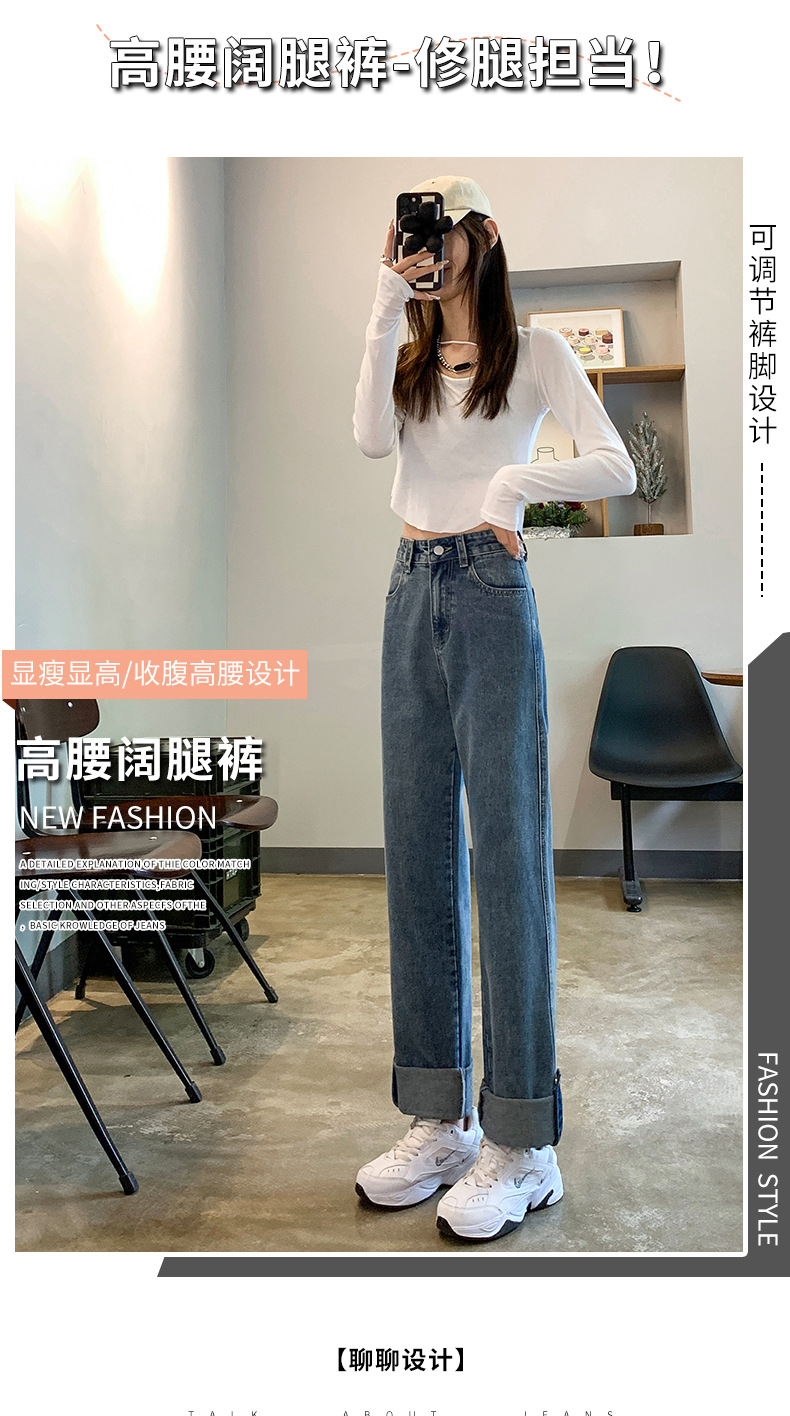 리얼 샷 디자인 센스 팬츠 청바지 여성용 2022 새로운 하이 웨이스트 슬리밍 봄과 가을 스트레이트 느슨한 걸레 바지스토어 가기