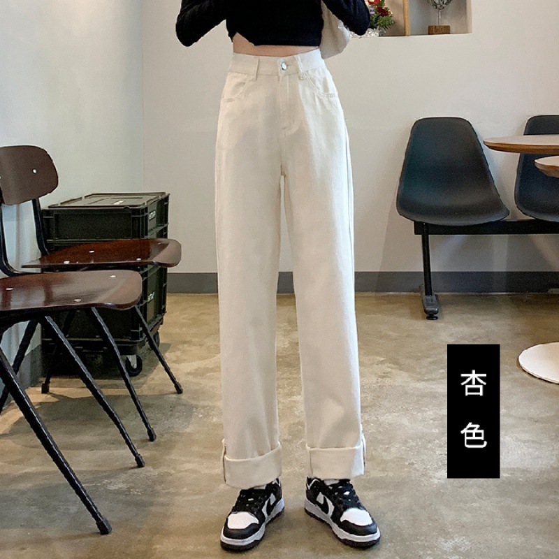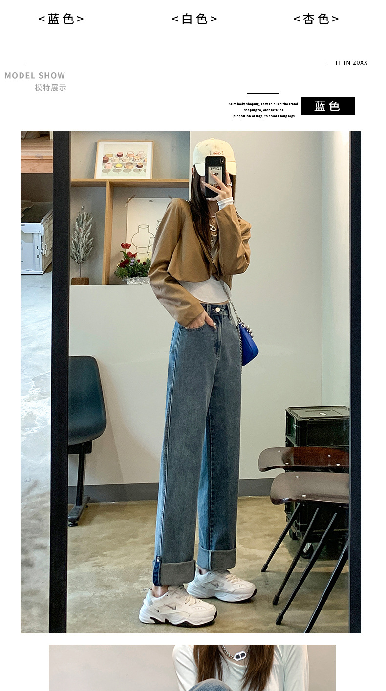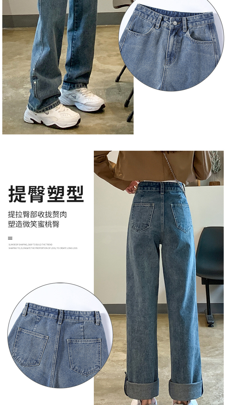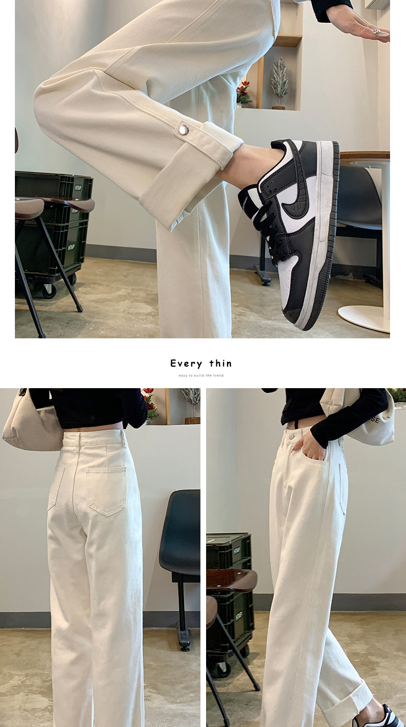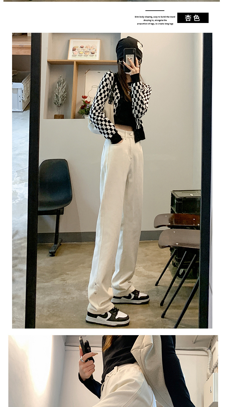 리얼 샷 디자인 센스 팬츠 청바지 여성용 2022 새로운 하이 웨이스트 슬리밍 봄과 가을 스트레이트 느슨한 걸레 바지스토어 가기