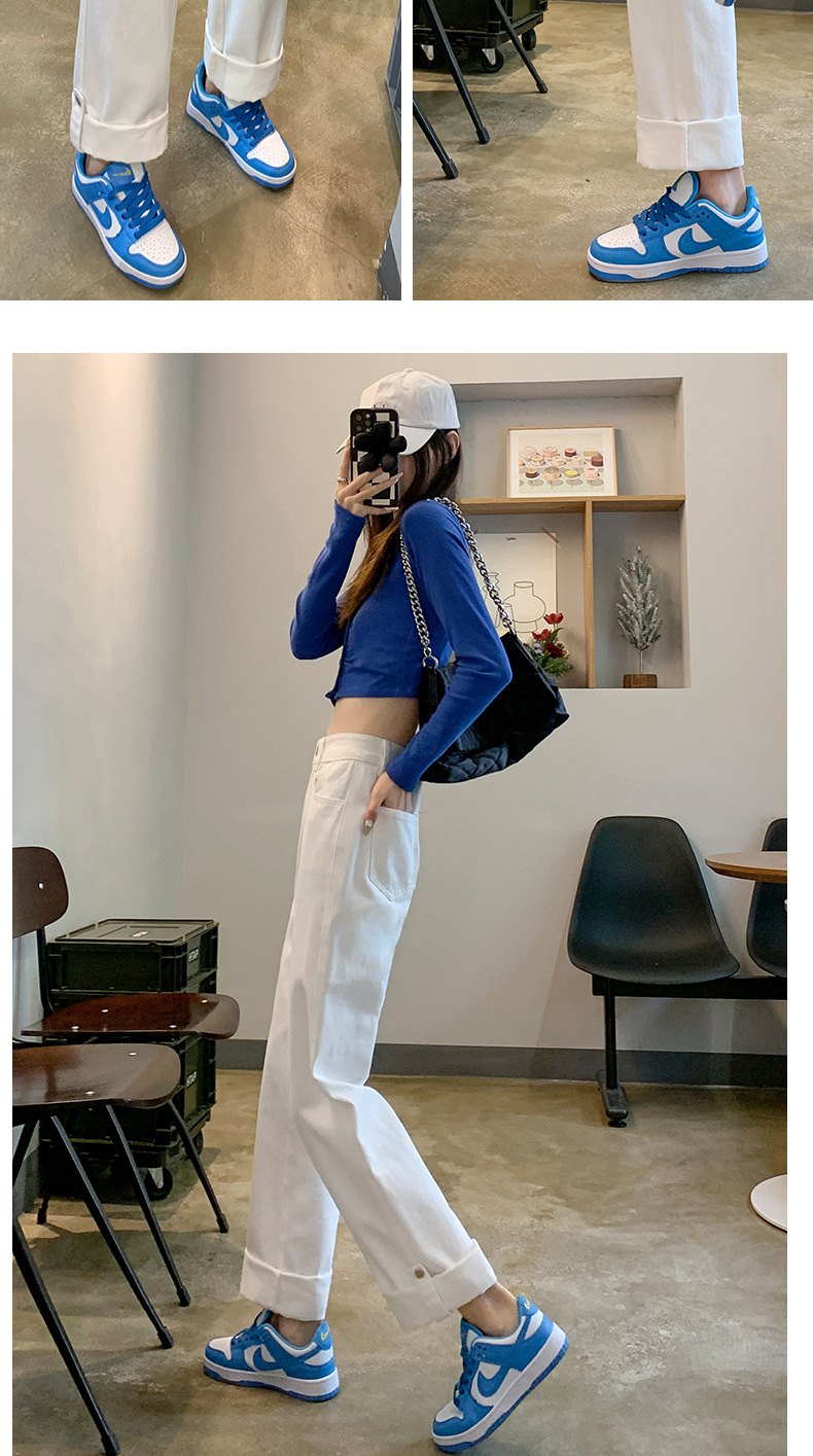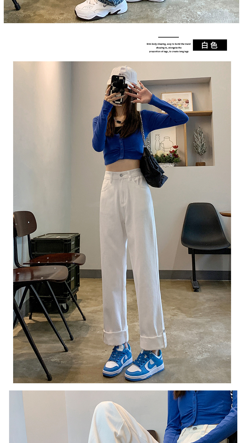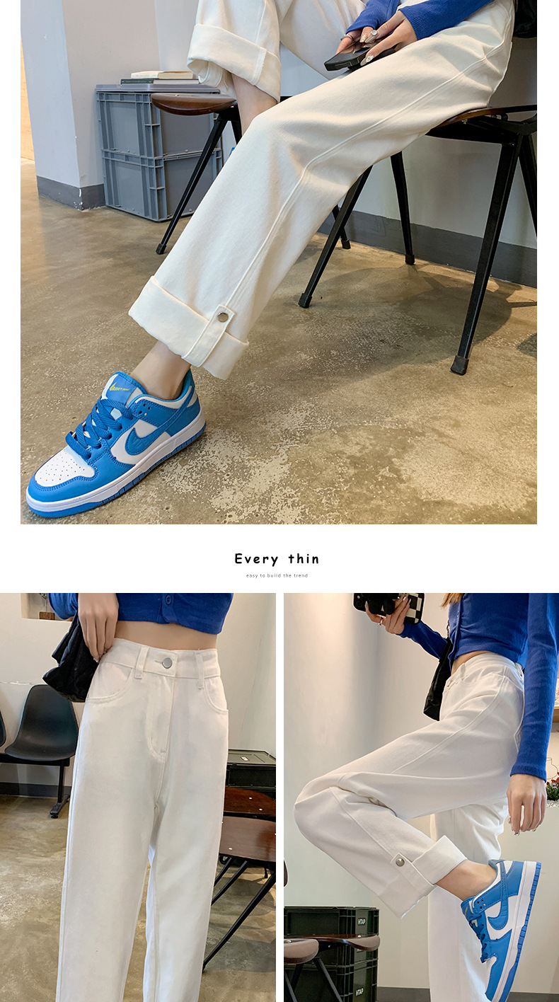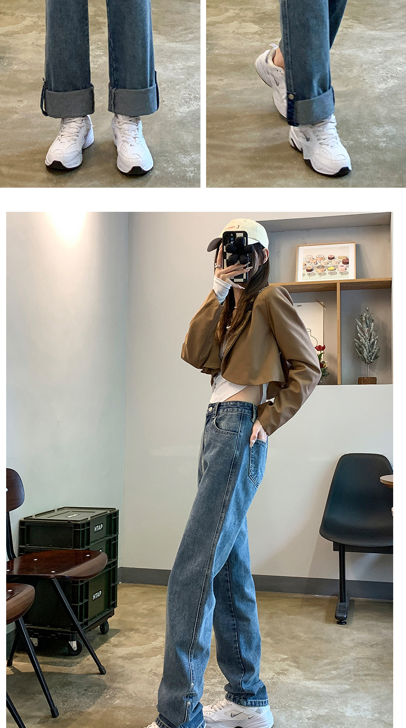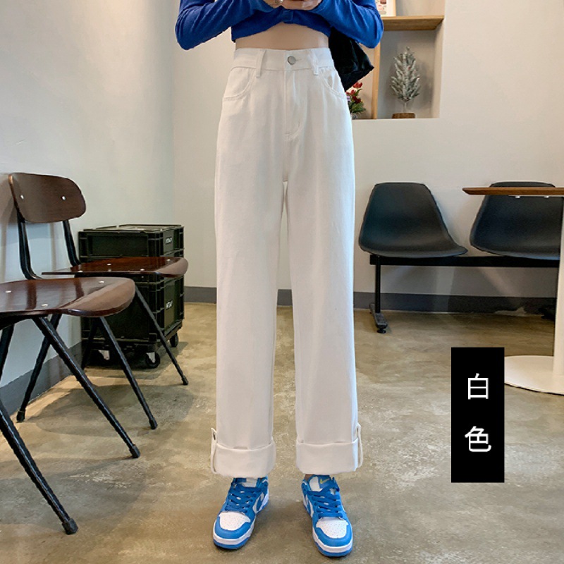 리얼 샷 디자인 센스 팬츠 청바지 여성용 2022 새로운 하이 웨이스트 슬리밍 봄과 가을 스트레이트 느슨한 걸레 바지스토어 가기