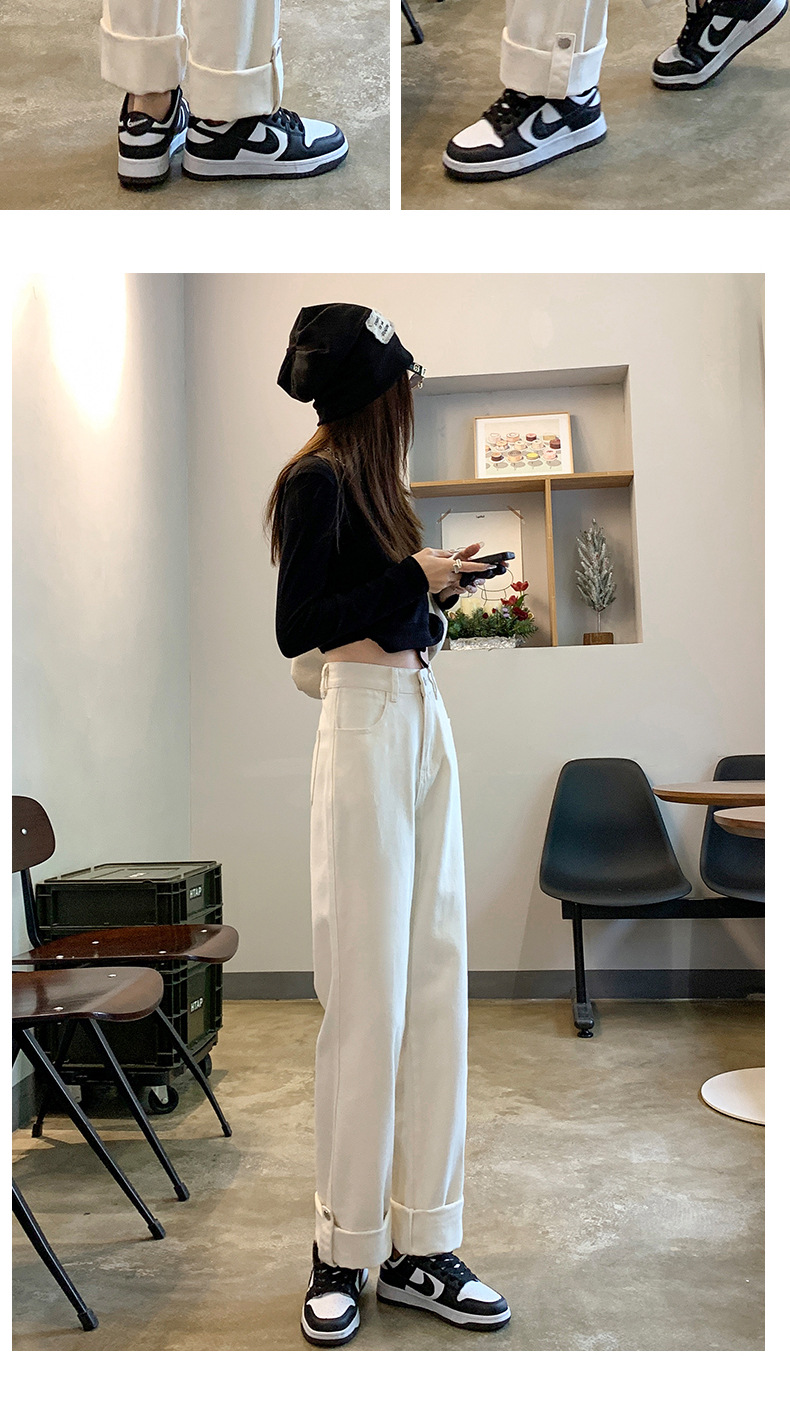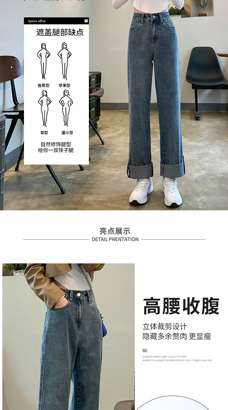 리얼 샷 디자인 센스 팬츠 청바지 여성용 2022 새로운 하이 웨이스트 슬리밍 봄과 가을 스트레이트 느슨한 걸레 바지