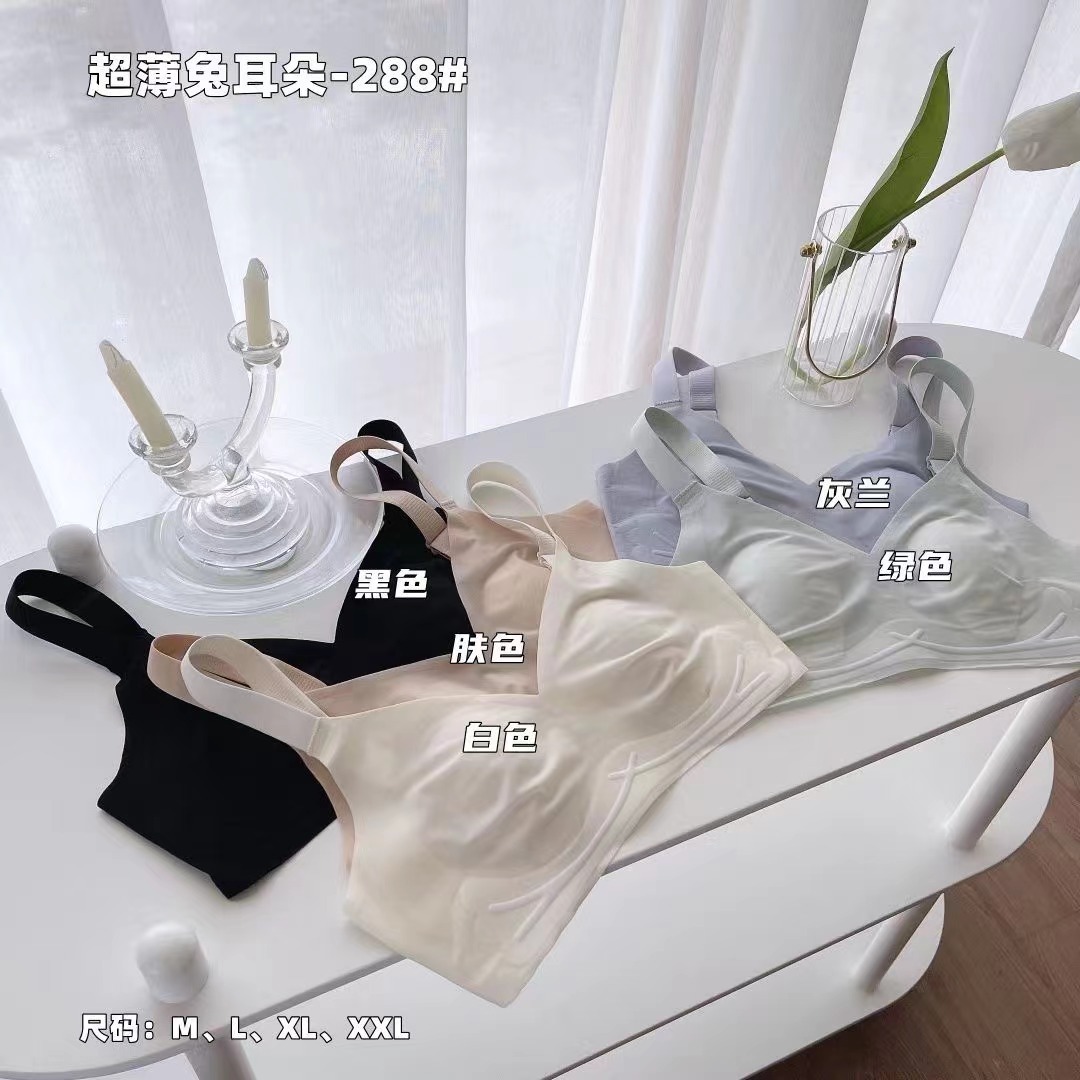 288 원활한 무선 액체 젤리 토끼 귀 구멍 컵 브래지어 섹시한 아이스 실크 경량 푸시 업 뷰티 백 속옷스토어 가기