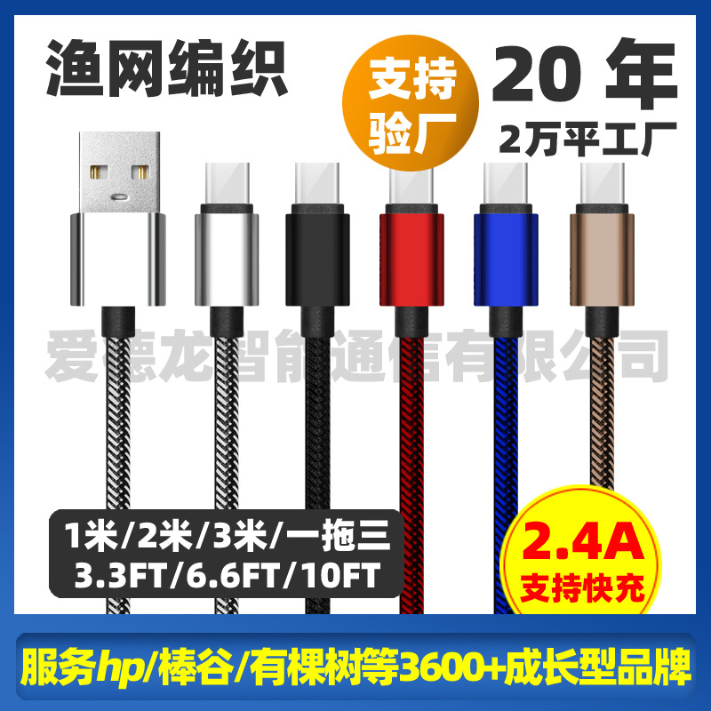 1m2m3 m 애플 고속 충전 라인 용 낚시 실크 꼰 데이터 케이블 안드로이드 타입-C 전화 usb 충전 라인 3A