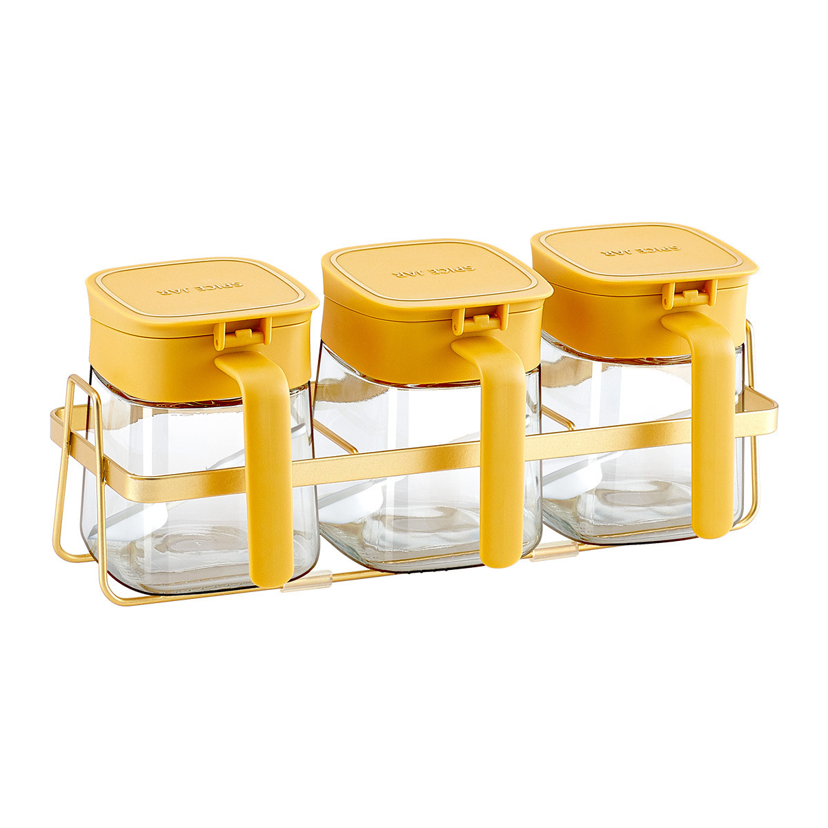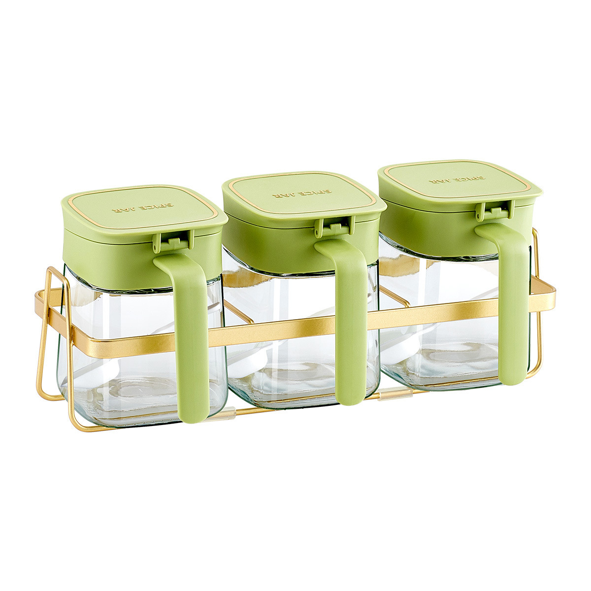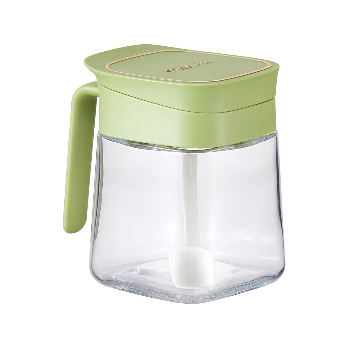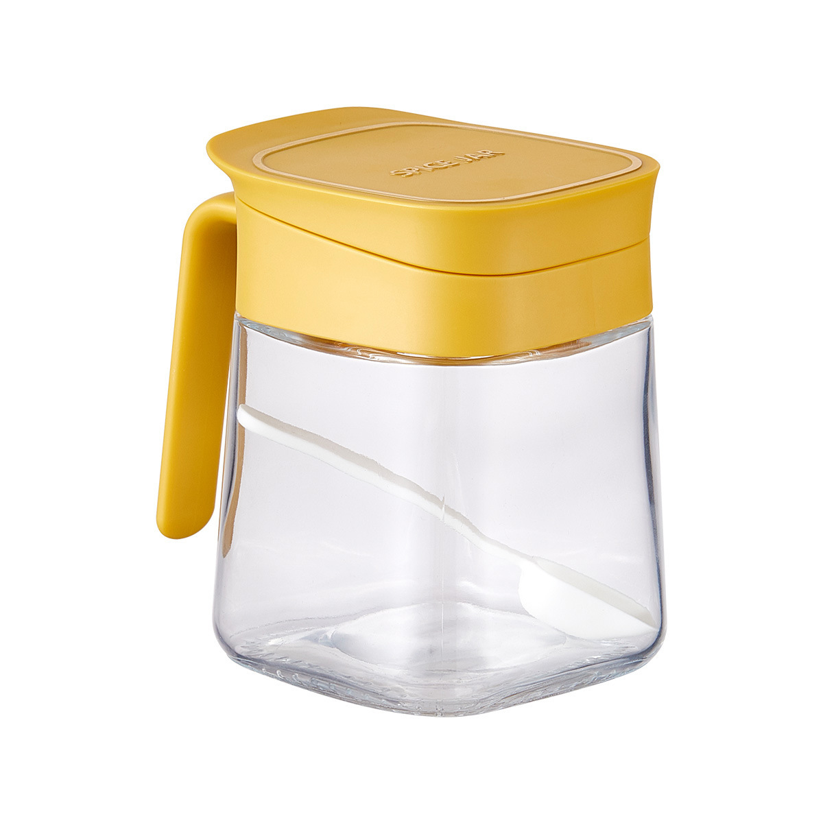 유리 조미료 항아리 플립 최고 조미료 상자 소금 항아리 가정용 조미료 병 숟가락 걸 수 있는 주방 조미료 항아리 세트
