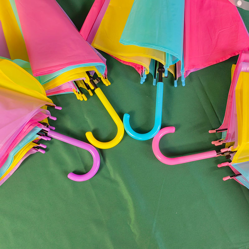 투명 우산 대형 도매 일회용 플라스틱 긴 손잡이 자동 써니 우산 인쇄 로고 어린이 광고 선물 우산