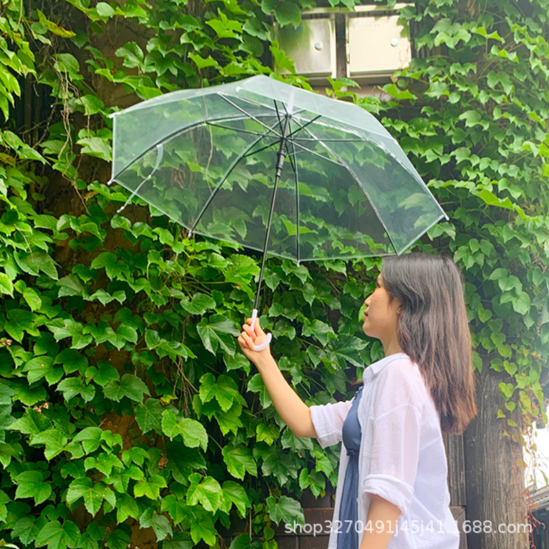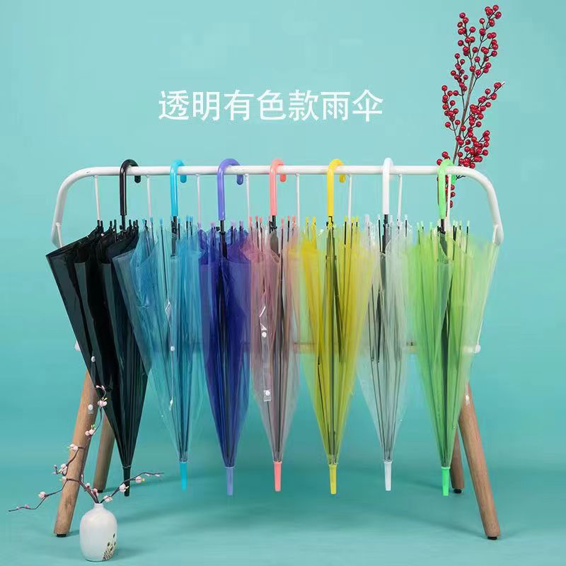 투명 우산 대형 도매 일회용 플라스틱 긴 손잡이 자동 써니 우산 인쇄 로고 어린이 광고 선물 우산스토어 가기