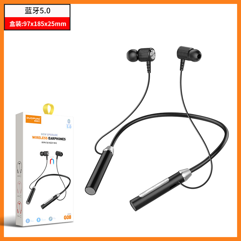 • 【벌크 포장】G08 넥밴드형 블루투스 이어폰 - 블랙 (충전 케이블 포함)