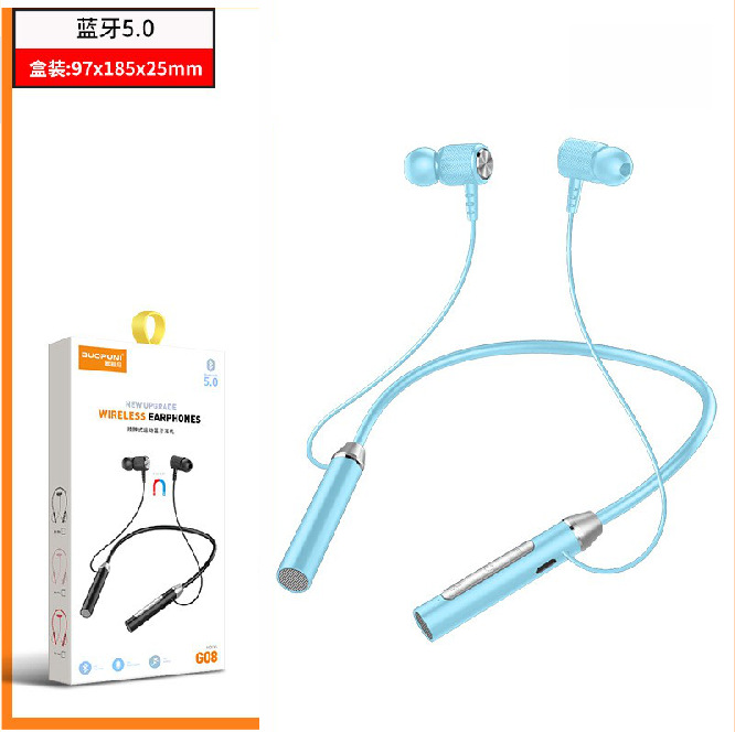 • 【벌크 포장】G08 넥밴드형 블루투스 이어폰 - 블루 (충전 케이블 포함)