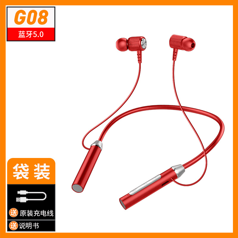 • 【벌크 포장】G08 넥밴드형 블루투스 이어폰 - 레드 (충전 케이블 포함)
