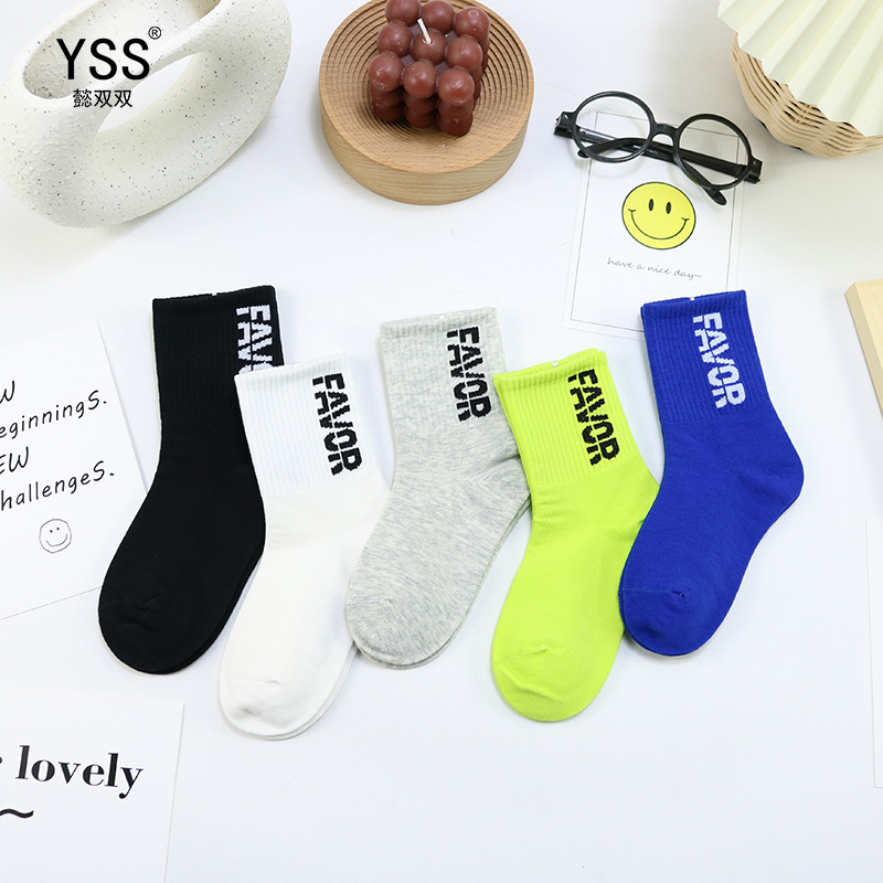 어린이 더블 페어 양말 가을과 겨울 새로운 한국식 문자 중간 종아리 길이 양말 면화 소년 패션 브랜드 학생 스포츠 양말을 빗어