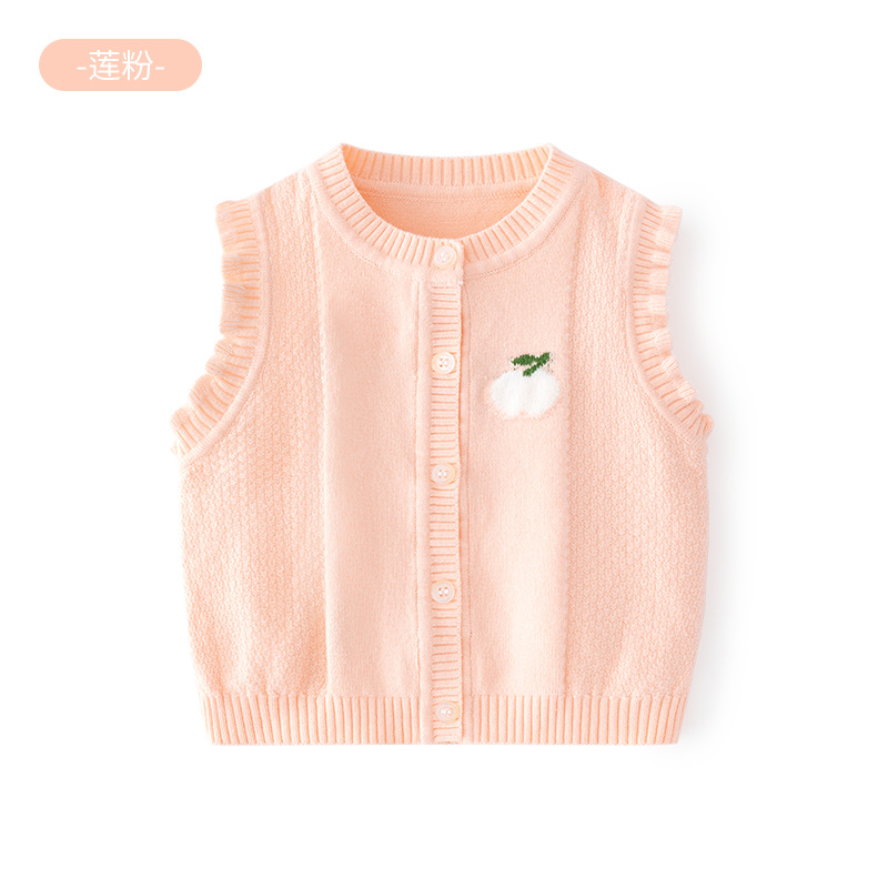 달콤한 A급 여아 조끼 스웨터 가을 겨울 단색 심플 레이스 소매 아기 조끼 가디건 유아 조끼