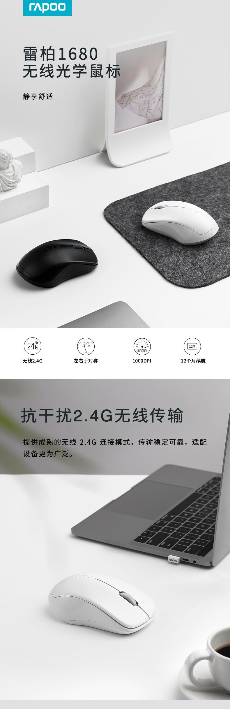 레이 바이 1680 무선 마우스 비즈니스 사무실 데스크톱 컴퓨터 노트북 게임 무선 음소거 마우스 휴대용 지방