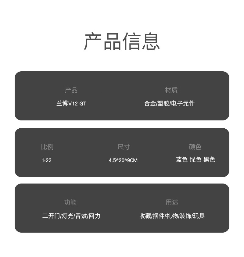 1 ~ 22 람보 V12 합금 모델 백 포스 사운드 및 빛 시뮬레이션 럭셔리카 로고 소년 장난감 자동차 장식품 라이브 추천스토어 가기
