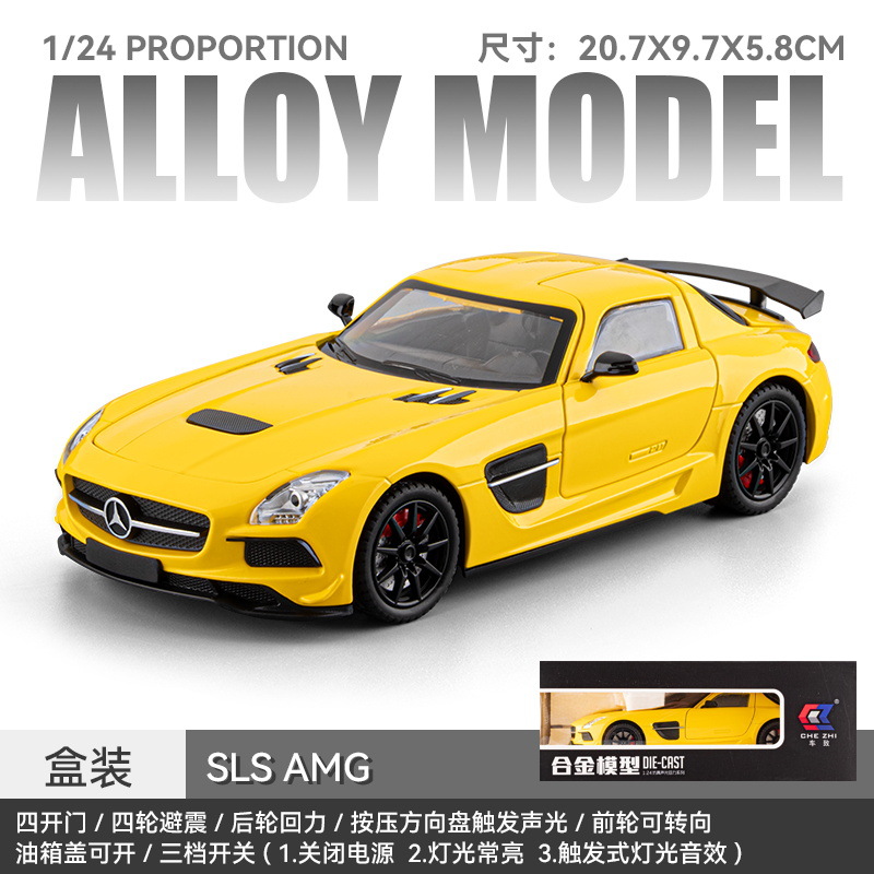 • 1:24 자동차에서 메르세데스-벤츠 SLS-박스-옐로우