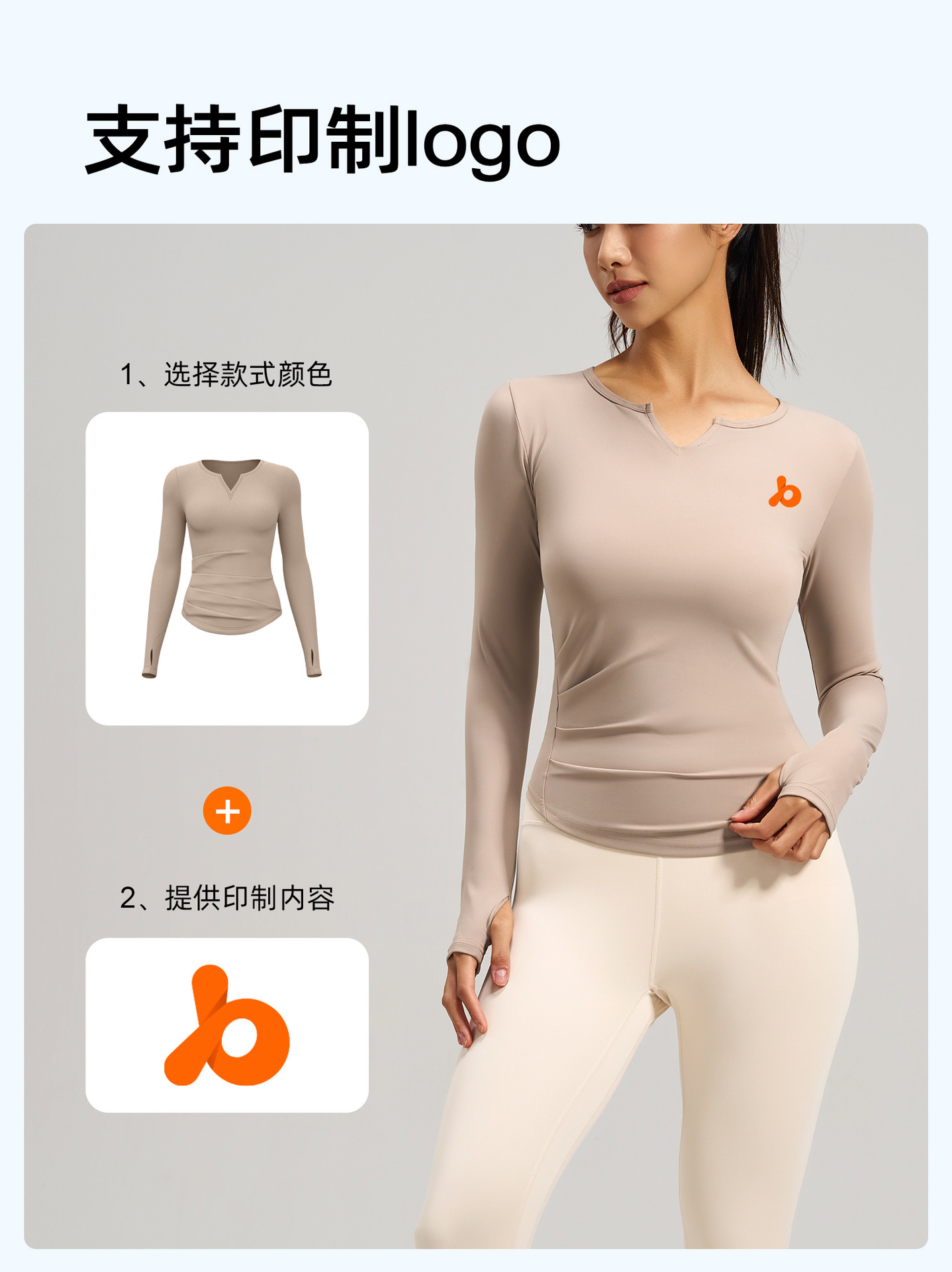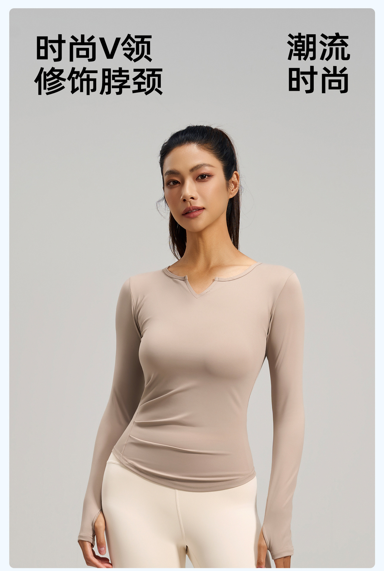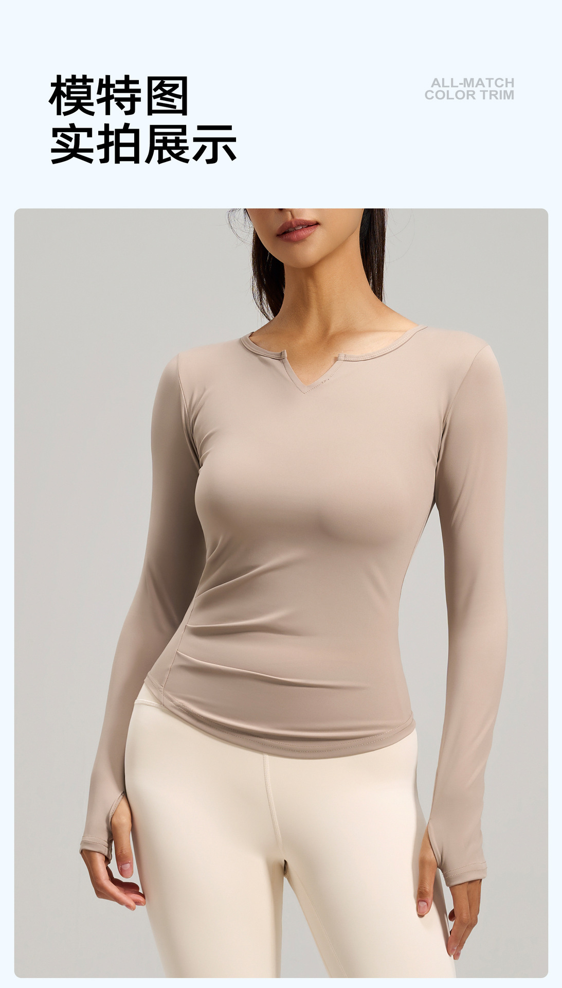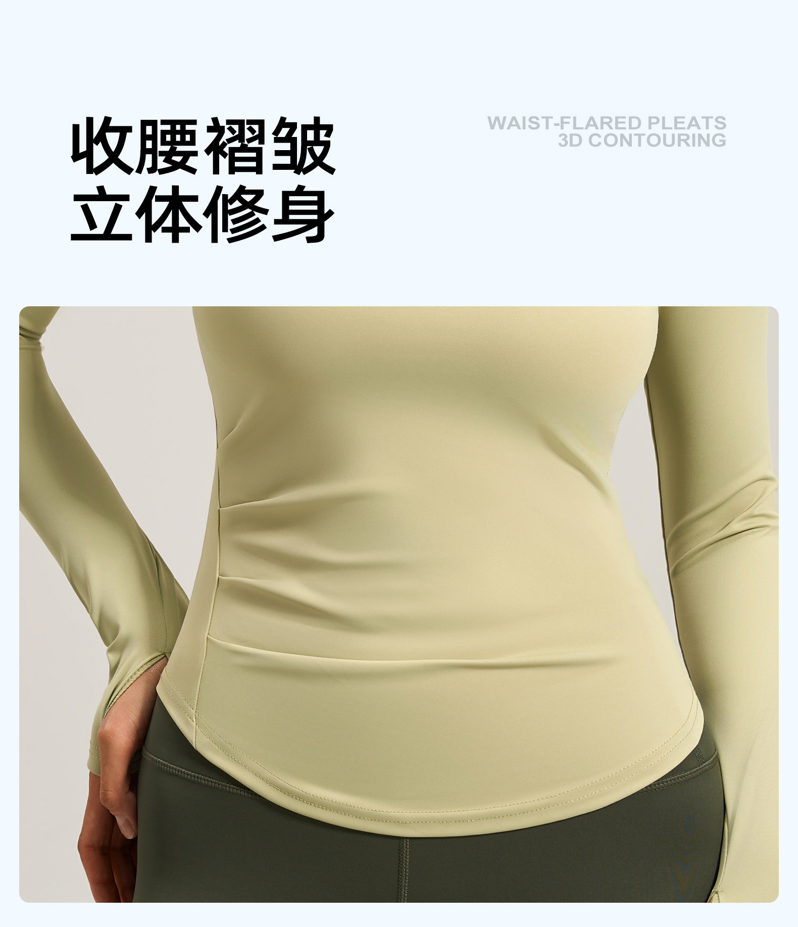 국경을 넘어 인기 있는 요가 긴팔 V넥 런닝 스포츠 탑 허리 주름 입체 슬림핏 피트니스 요가 티셔츠 여성용스토어 가기