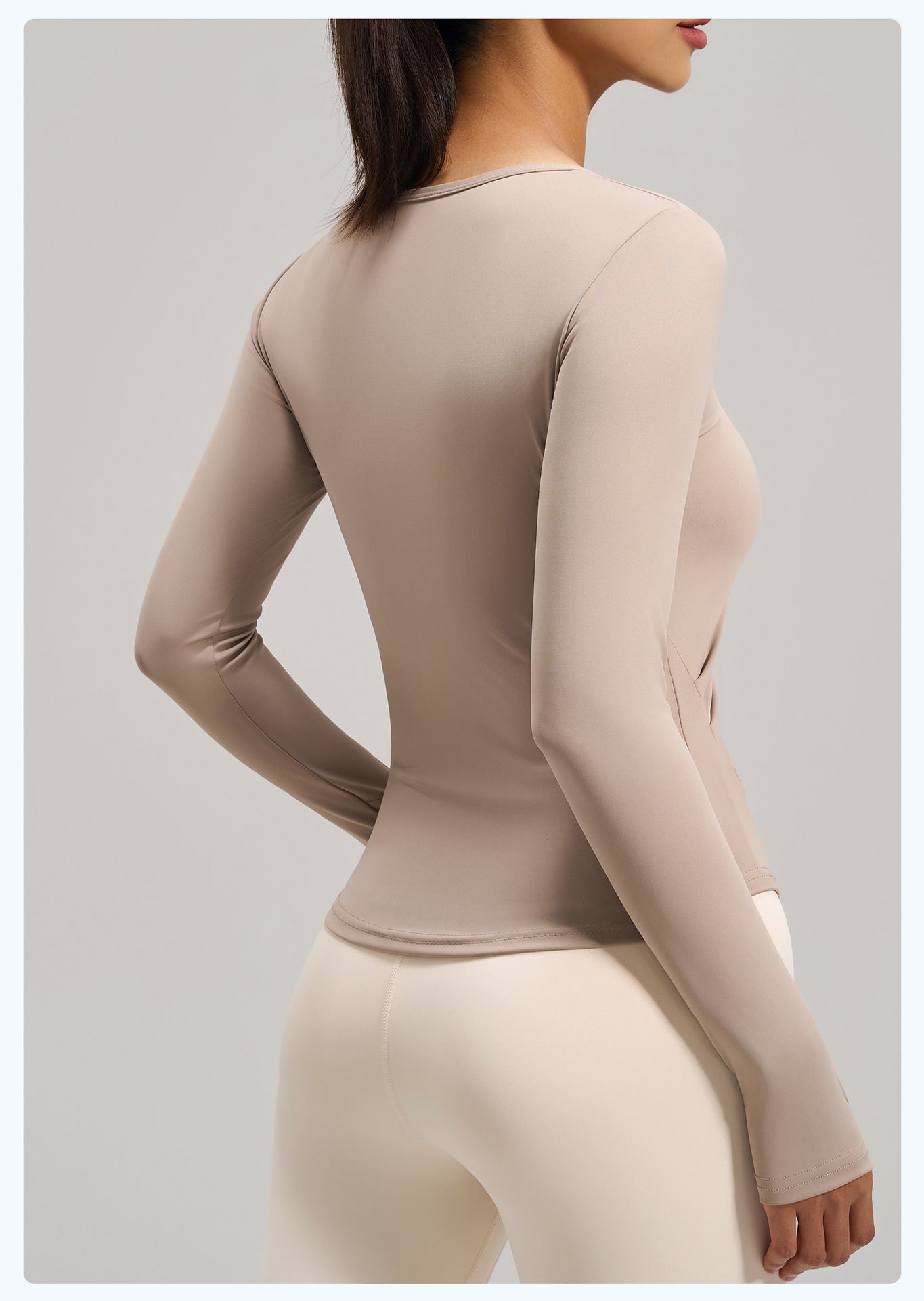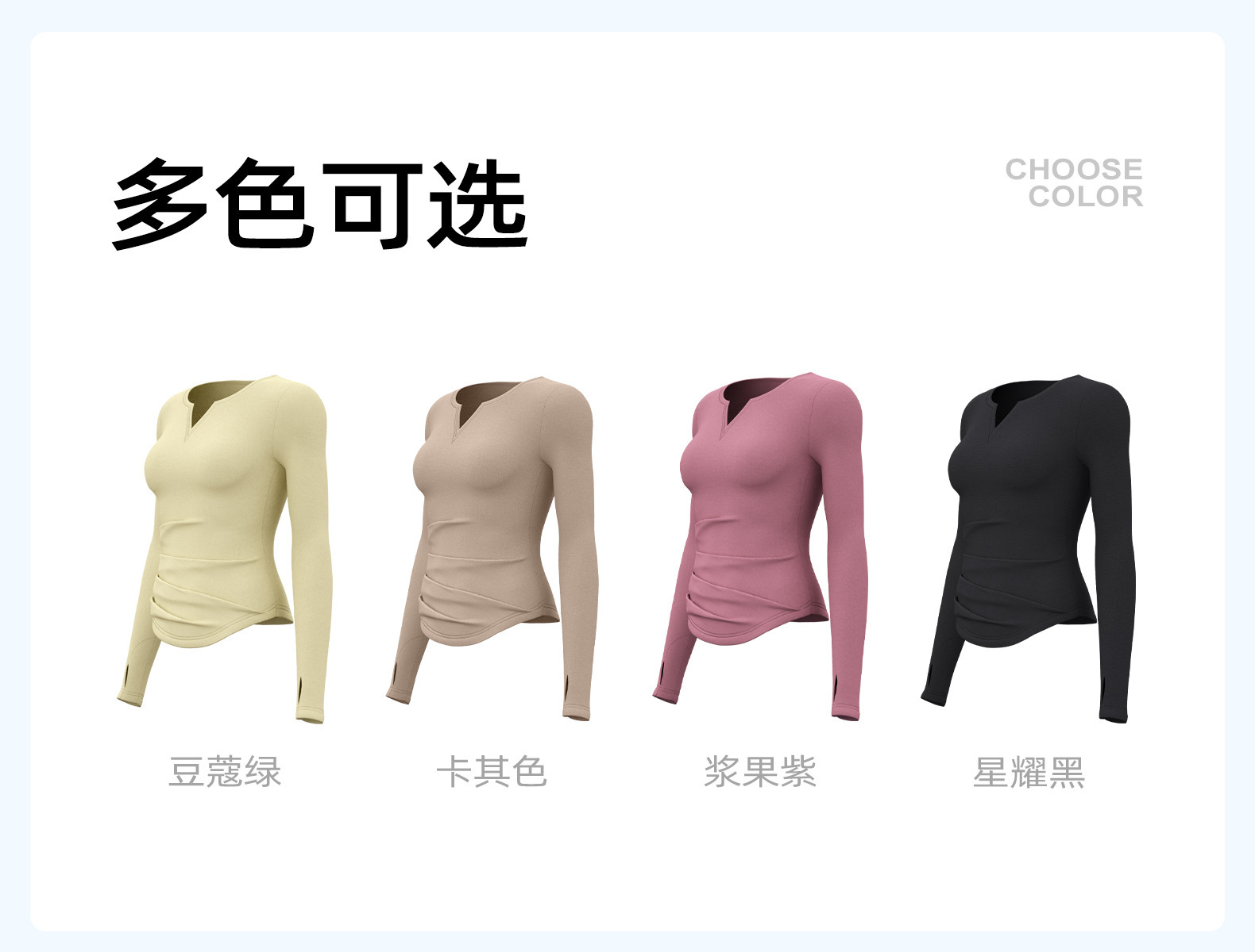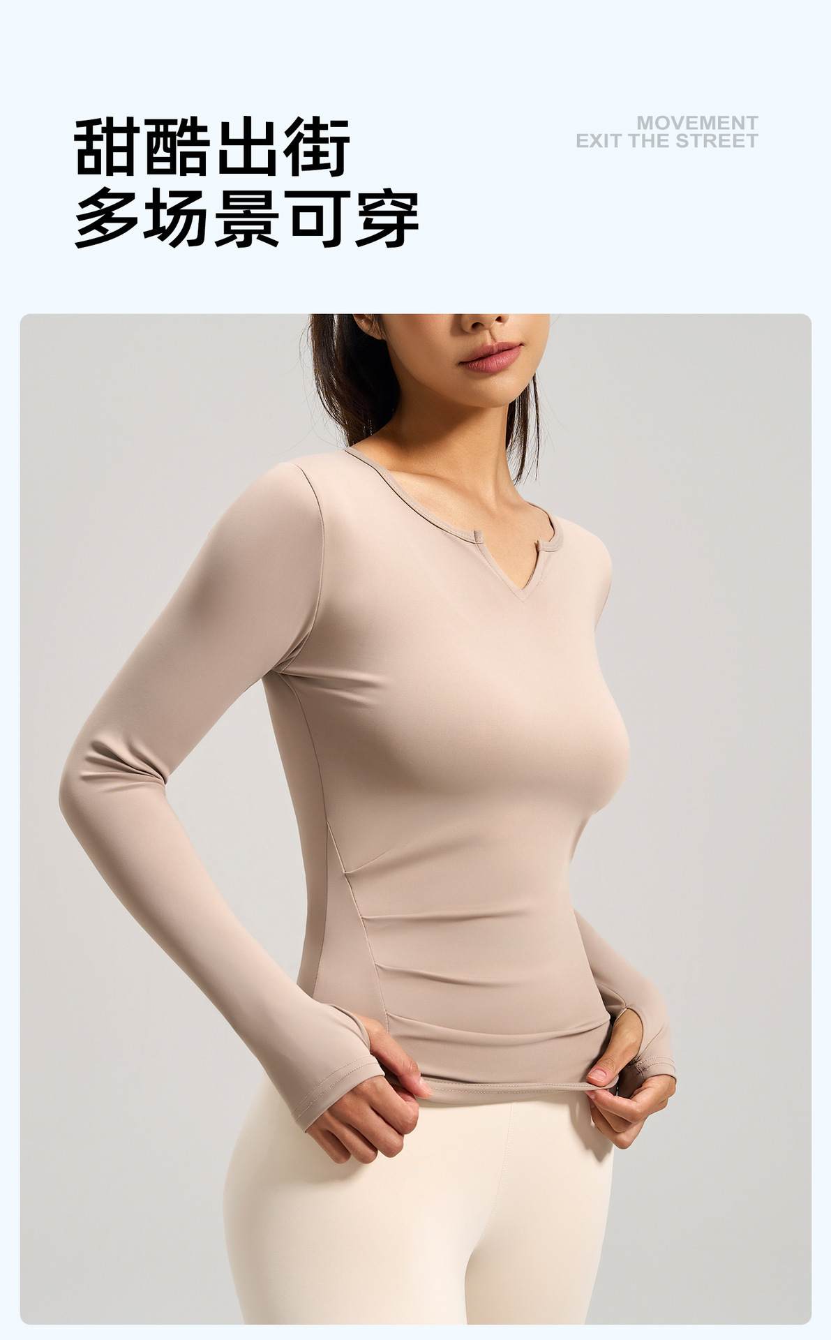 국경을 넘어 인기 있는 요가 긴팔 V넥 런닝 스포츠 탑 허리 주름 입체 슬림핏 피트니스 요가 티셔츠 여성용스토어 가기