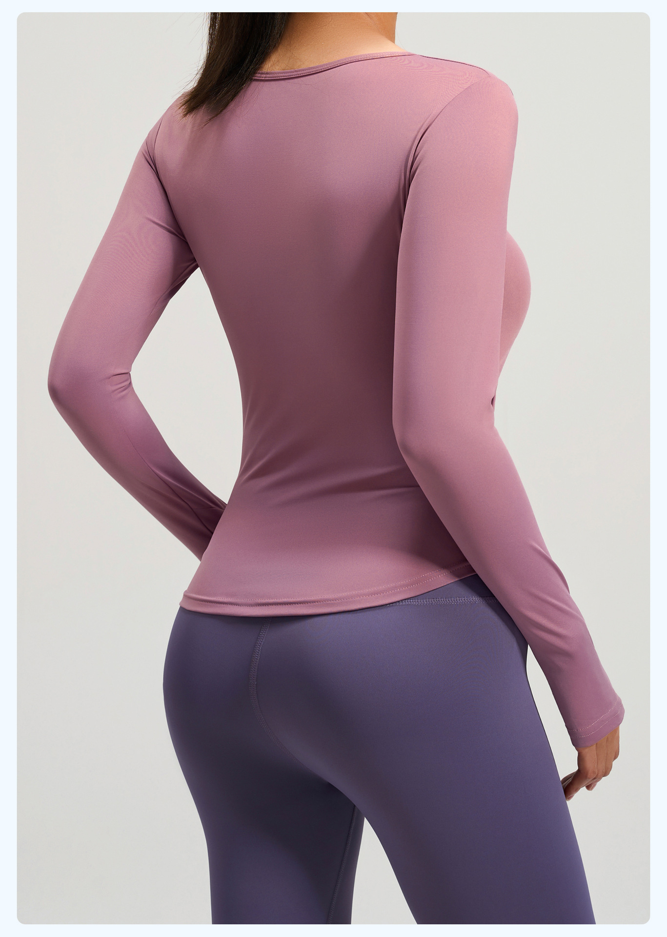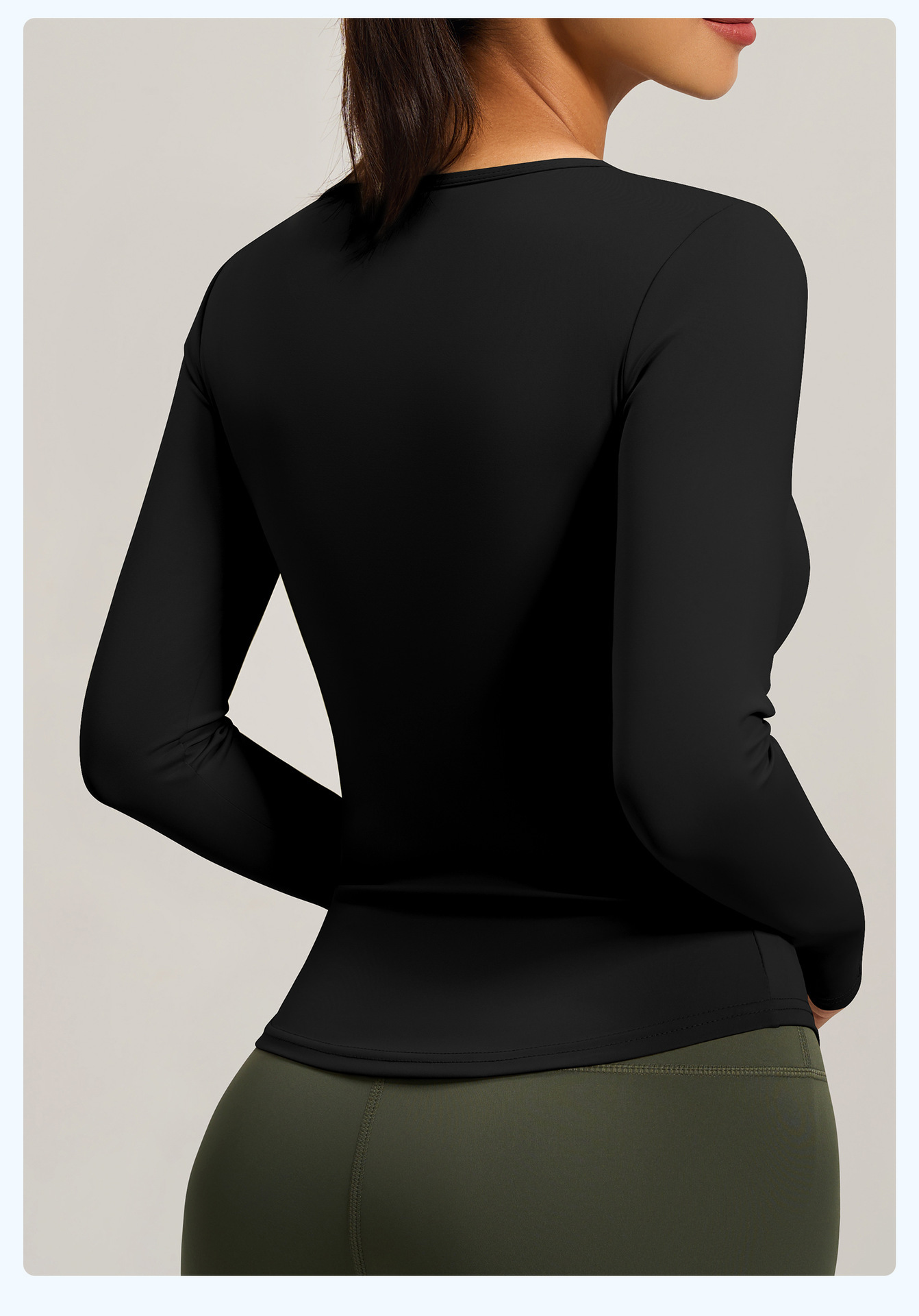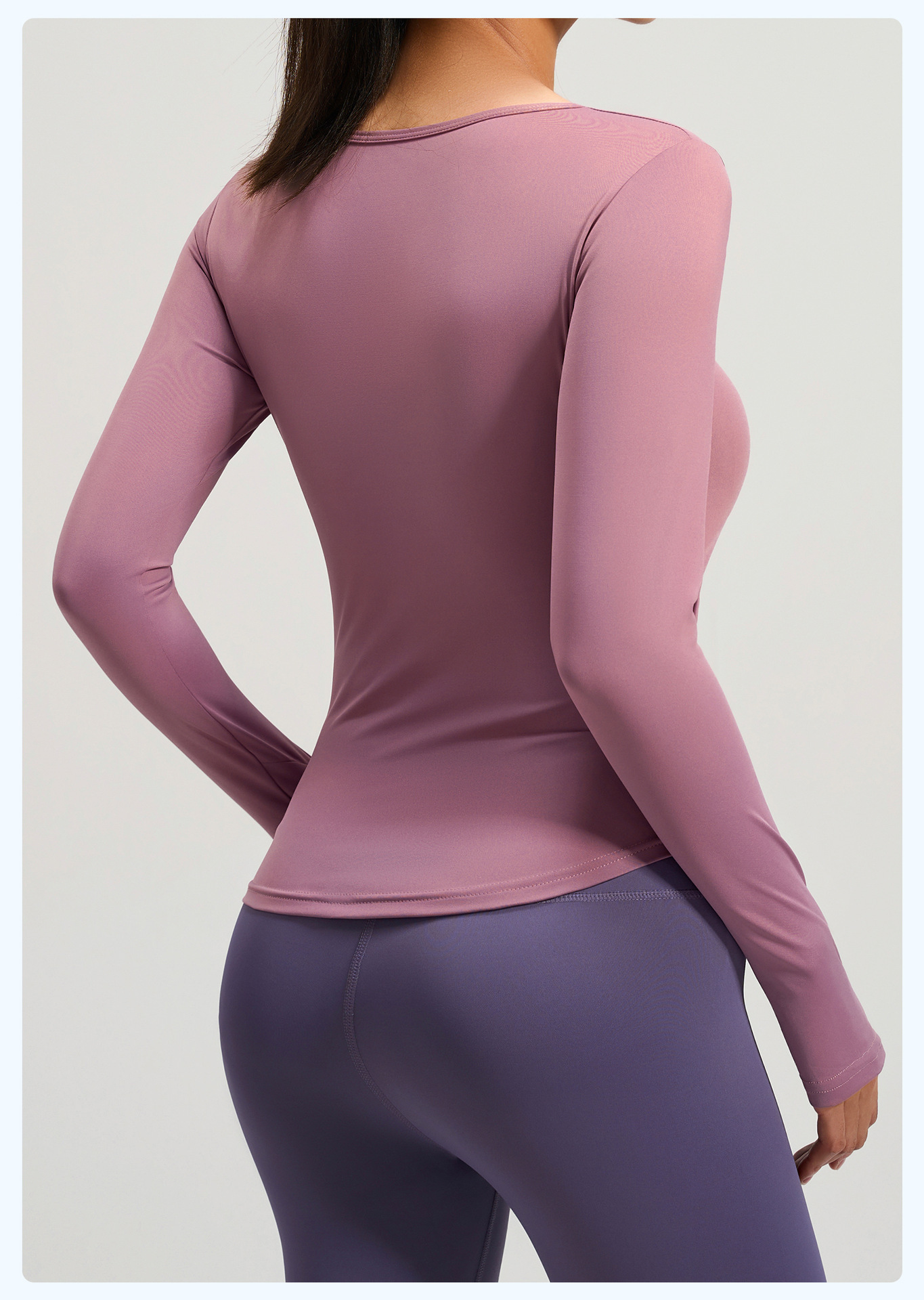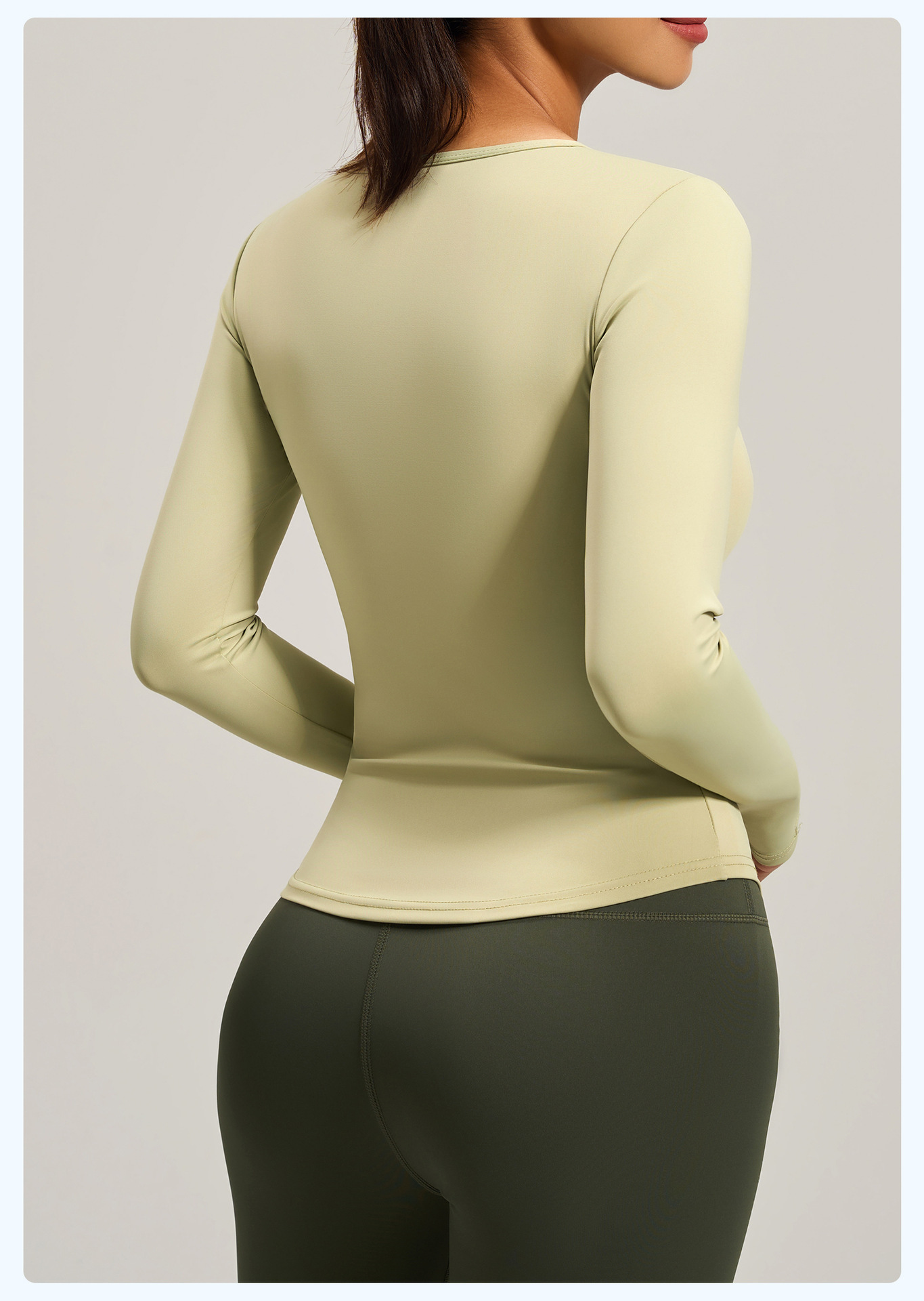 국경을 넘어 인기 있는 요가 긴팔 V넥 런닝 스포츠 탑 허리 주름 입체 슬림핏 피트니스 요가 티셔츠 여성용스토어 가기