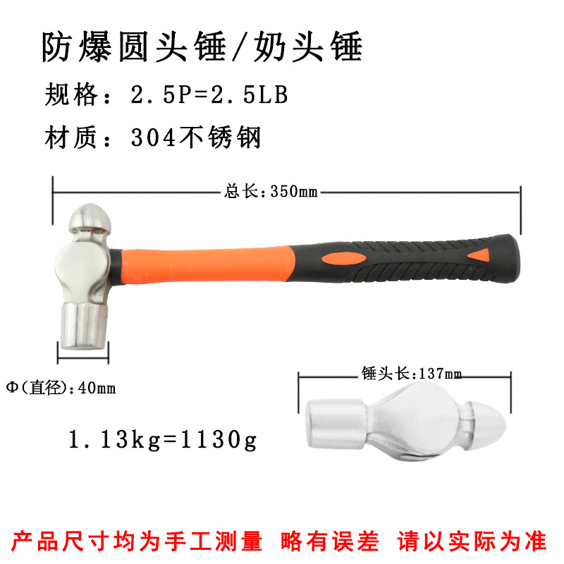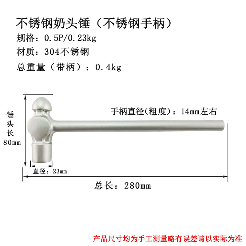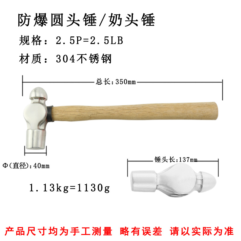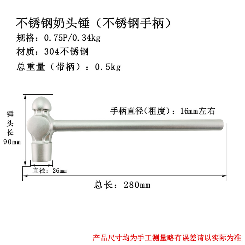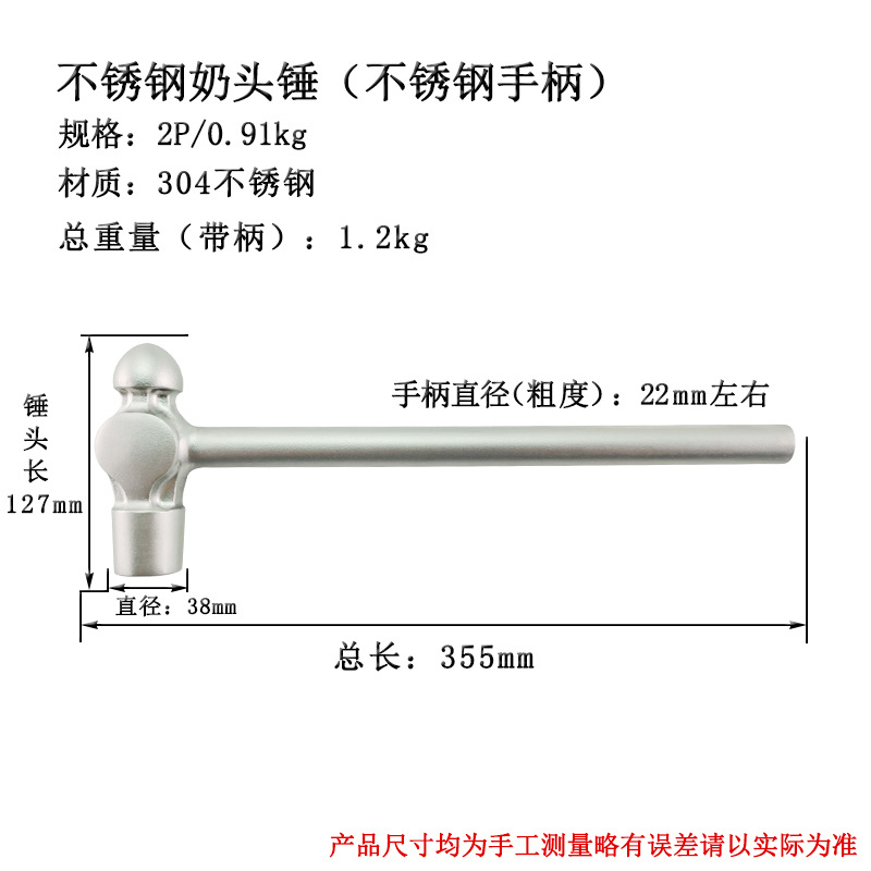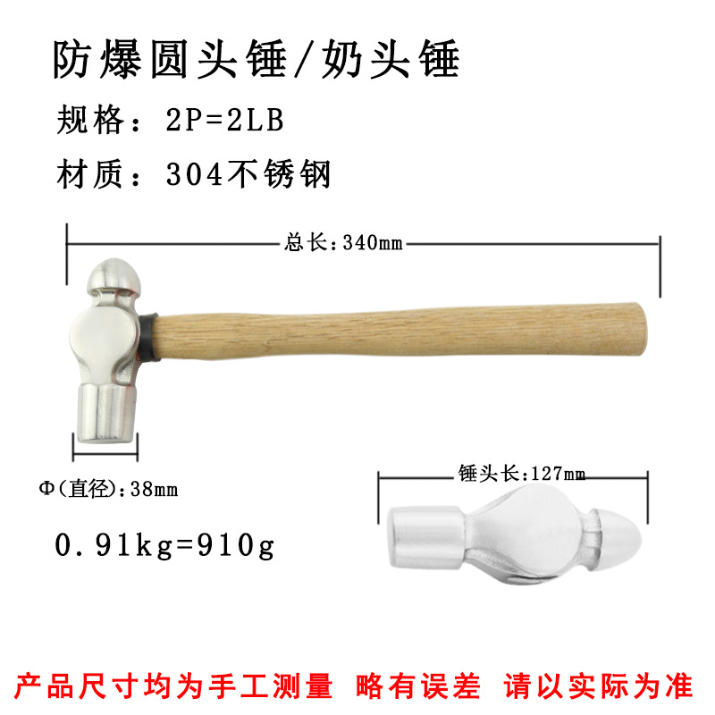 5051 보팡 304 스테인리스 스틸 망치 비자성 2LB 나무 손잡이 1P 고무 손잡이 백강 원형 헤드 망치 2.5lb
