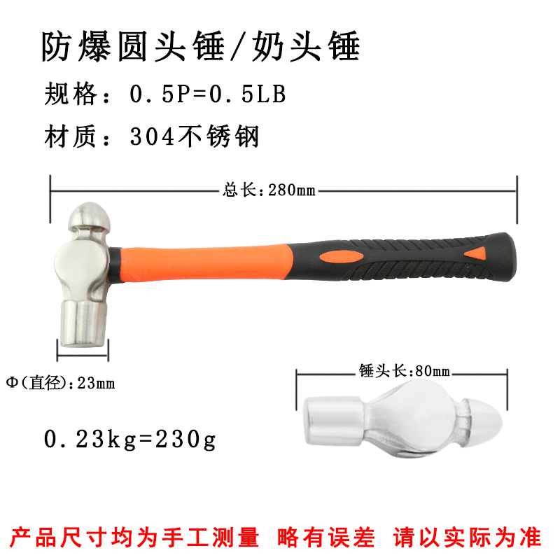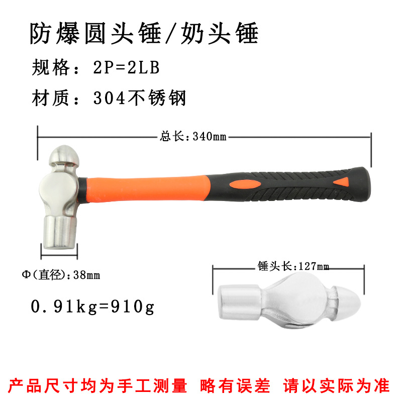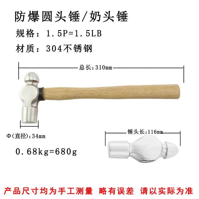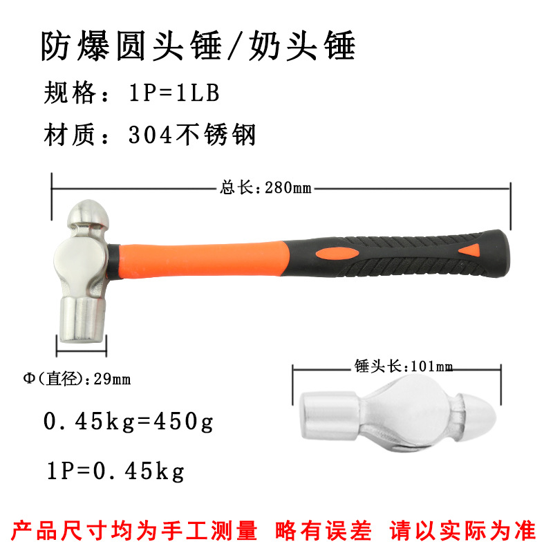 5051 보팡 304 스테인리스 스틸 망치 비자성 2LB 나무 손잡이 1P 고무 손잡이 백강 원형 헤드 망치 2.5lb스토어 가기