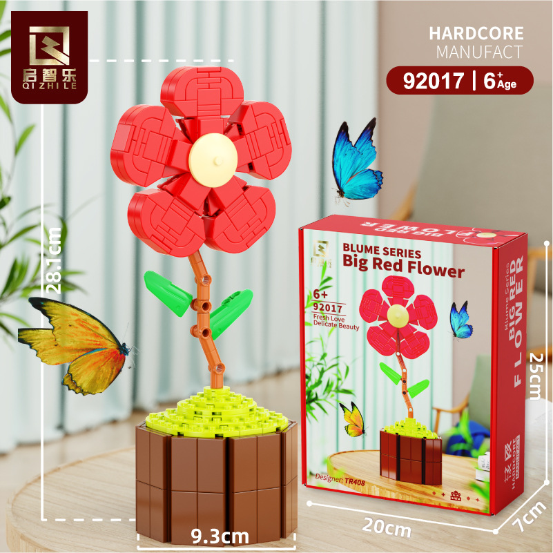 Daifa Kai Chi Le 92017 작은 붉은 꽃 국가 조수 장식 불멸의 빌딩 블록 꽃 레고 장난감 및 선물 크로스 보더와 호환 가능스토어 가기