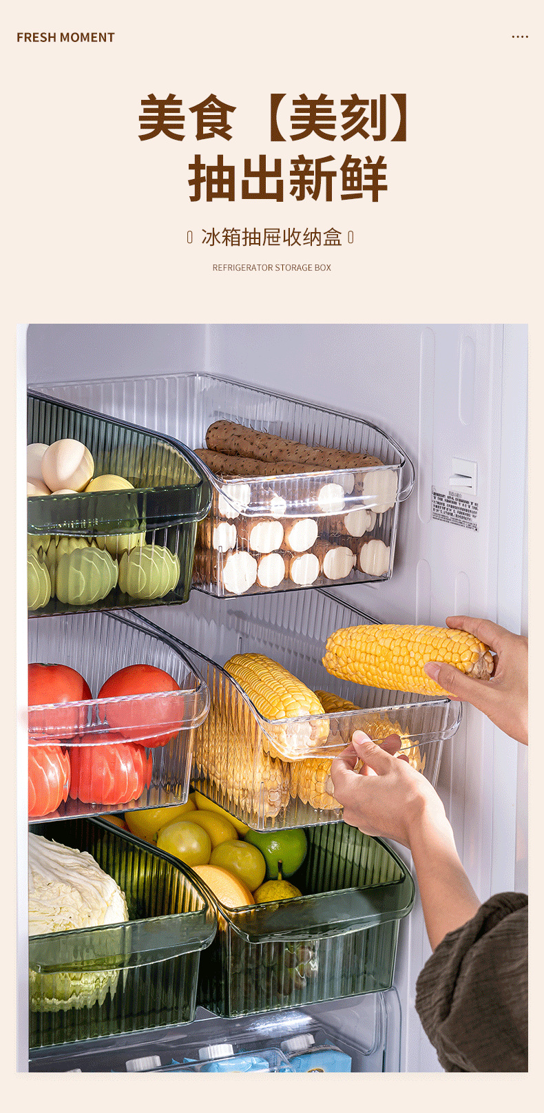 냉장고 보관함 서랍형 도매 PET 대형 탁상 보관함 투명 바퀴 달린 과일 야채 분류 보관함