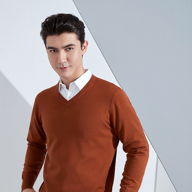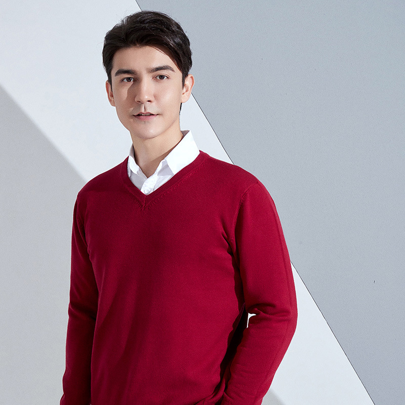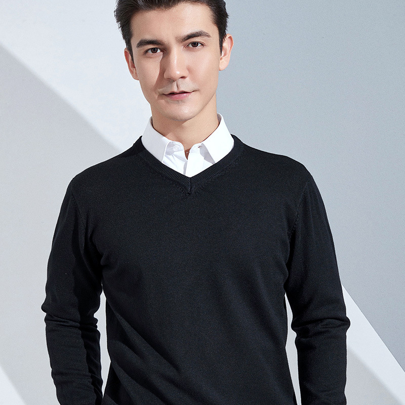 V 넥 스웨터 남성 봄, 가을 짧은 풀오버 스웨터 슬림 솔리드 컬러 캐주얼 따뜻한 솔리드 컬러 긴팔 바닥 셔츠