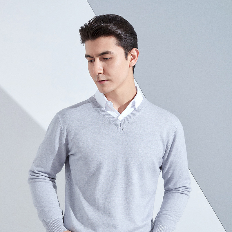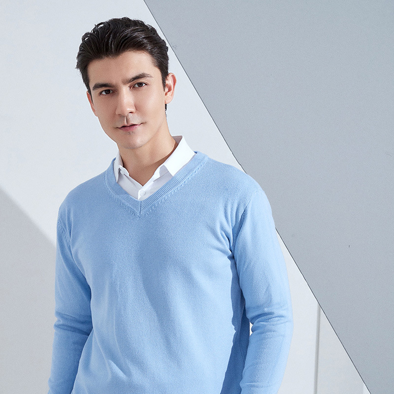 V 넥 스웨터 남성 봄, 가을 짧은 풀오버 스웨터 슬림 솔리드 컬러 캐주얼 따뜻한 솔리드 컬러 긴팔 바닥 셔츠스토어 가기