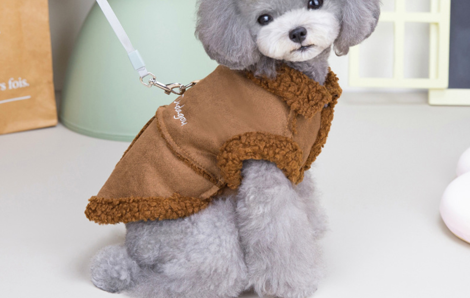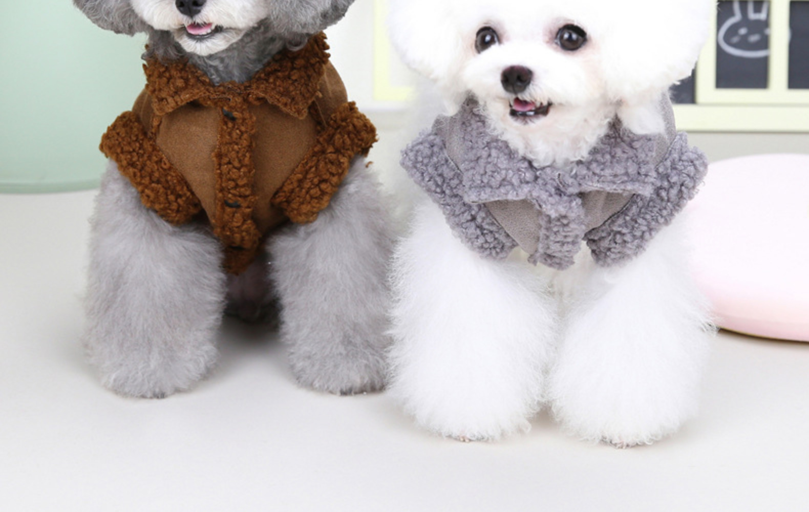 애완 동물 의류 개 의류 가을과 겨울 새로운 기모 다리 면 옷 애완 동물 의류 22 복숭아 가죽 조끼스토어 가기