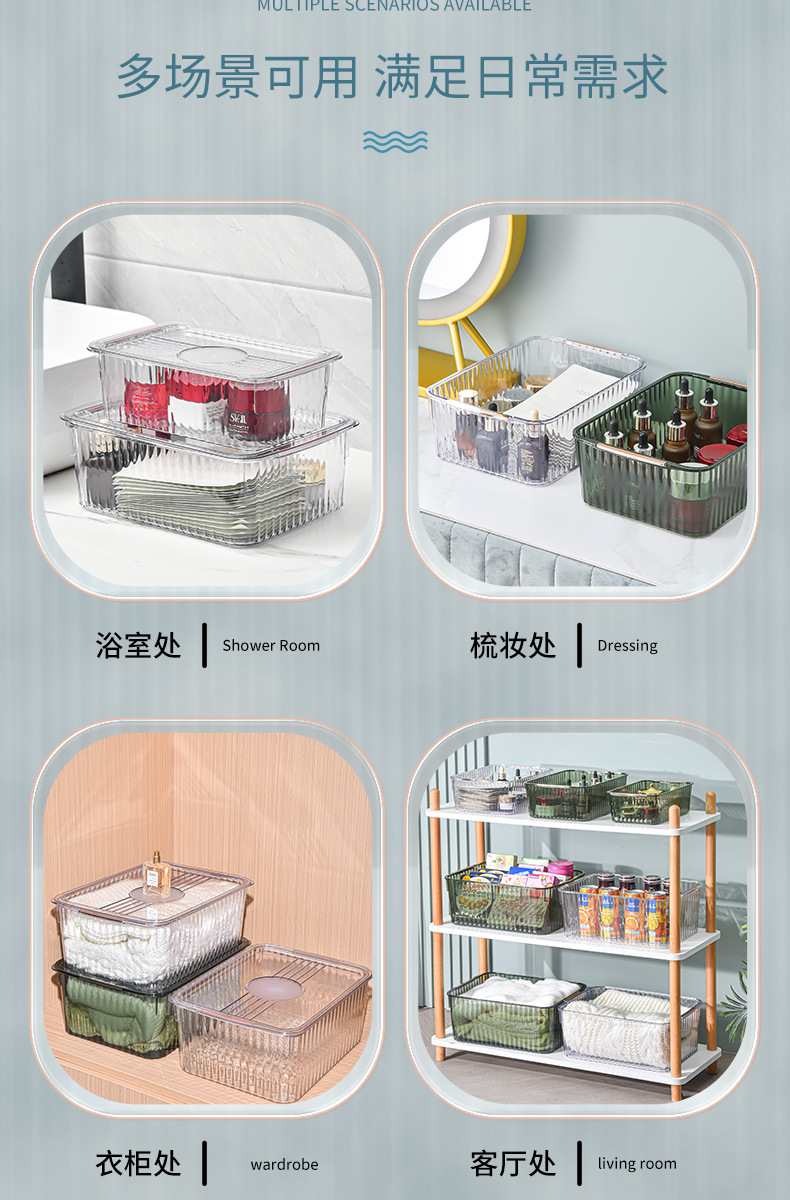 대용량 데스크탑 수납함 다기능 잡화 투명 수납함 욕실 수납 마무리 상자 신선 보관 상자 주방스토어 가기