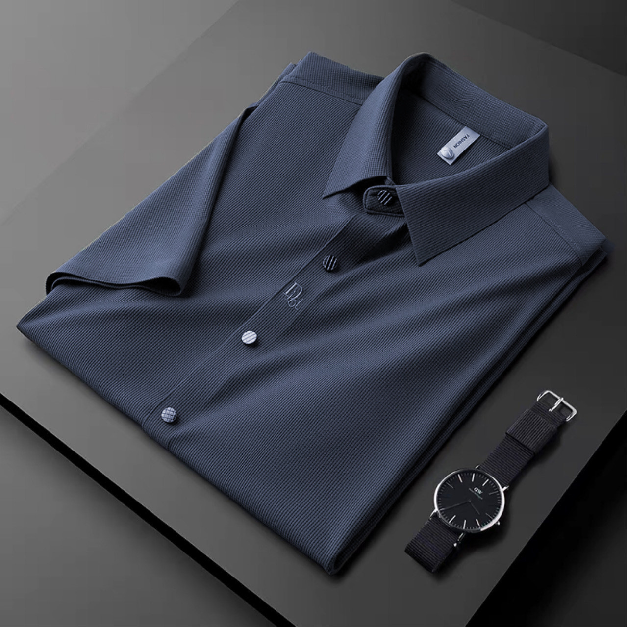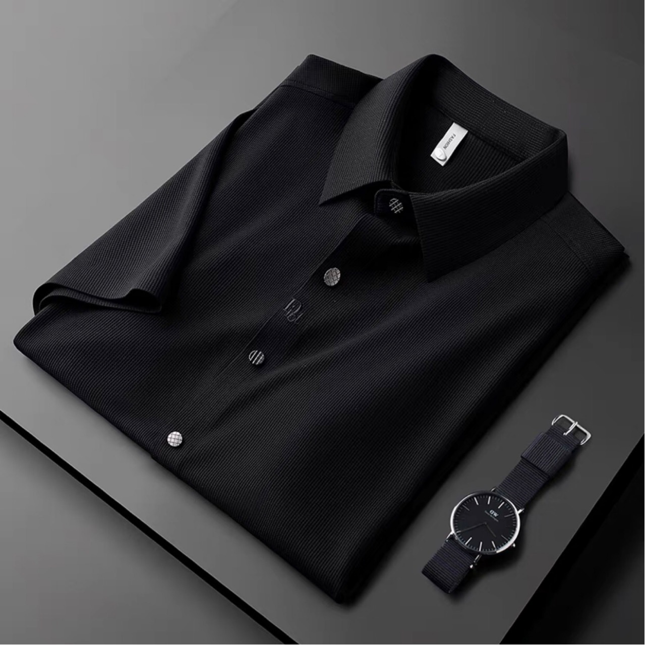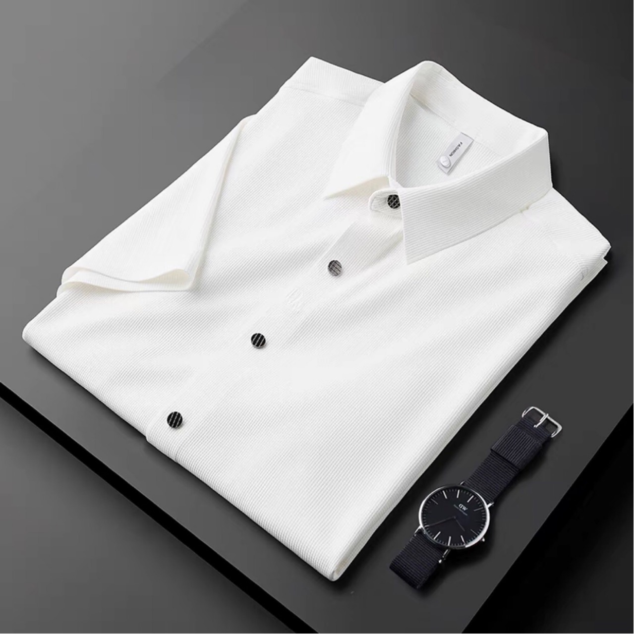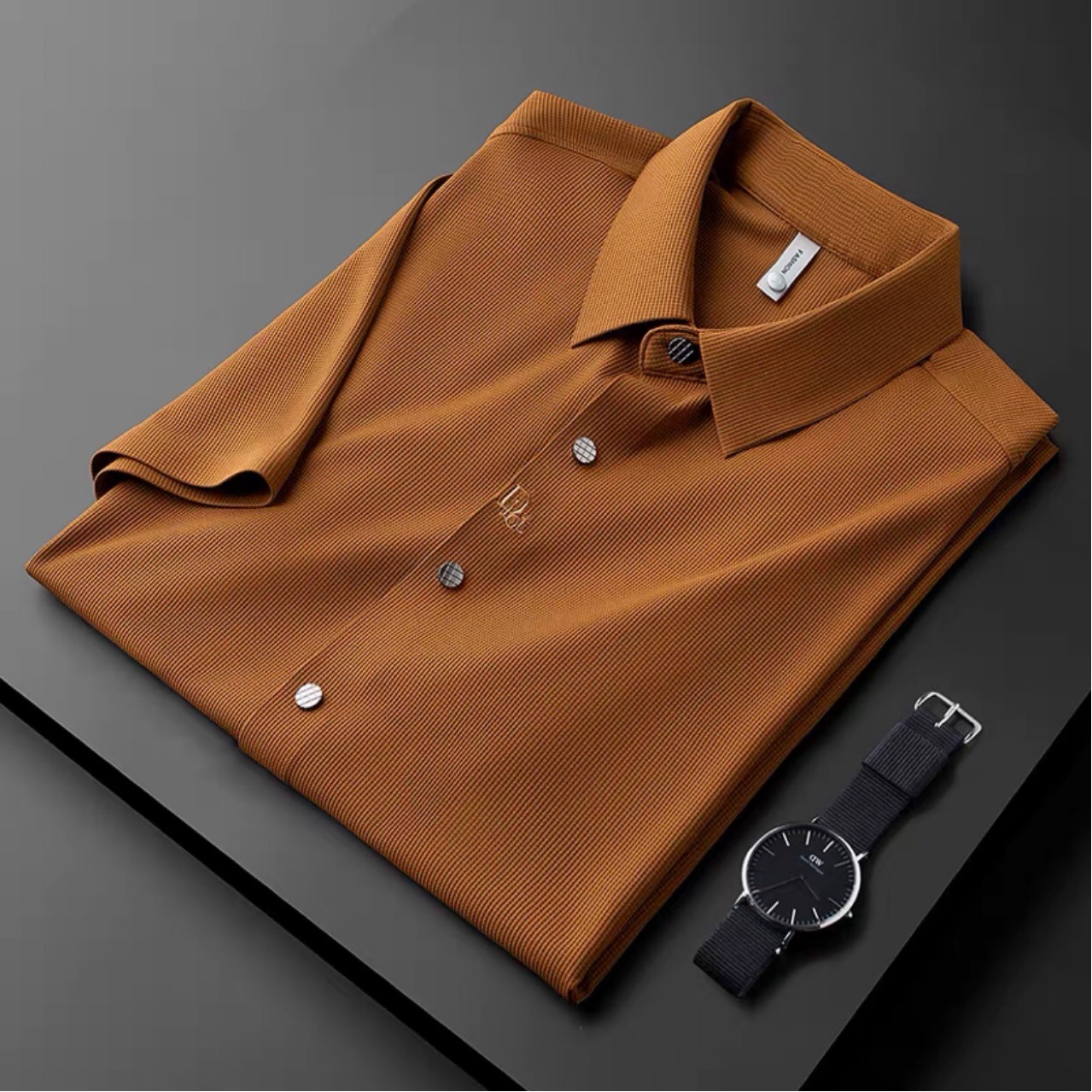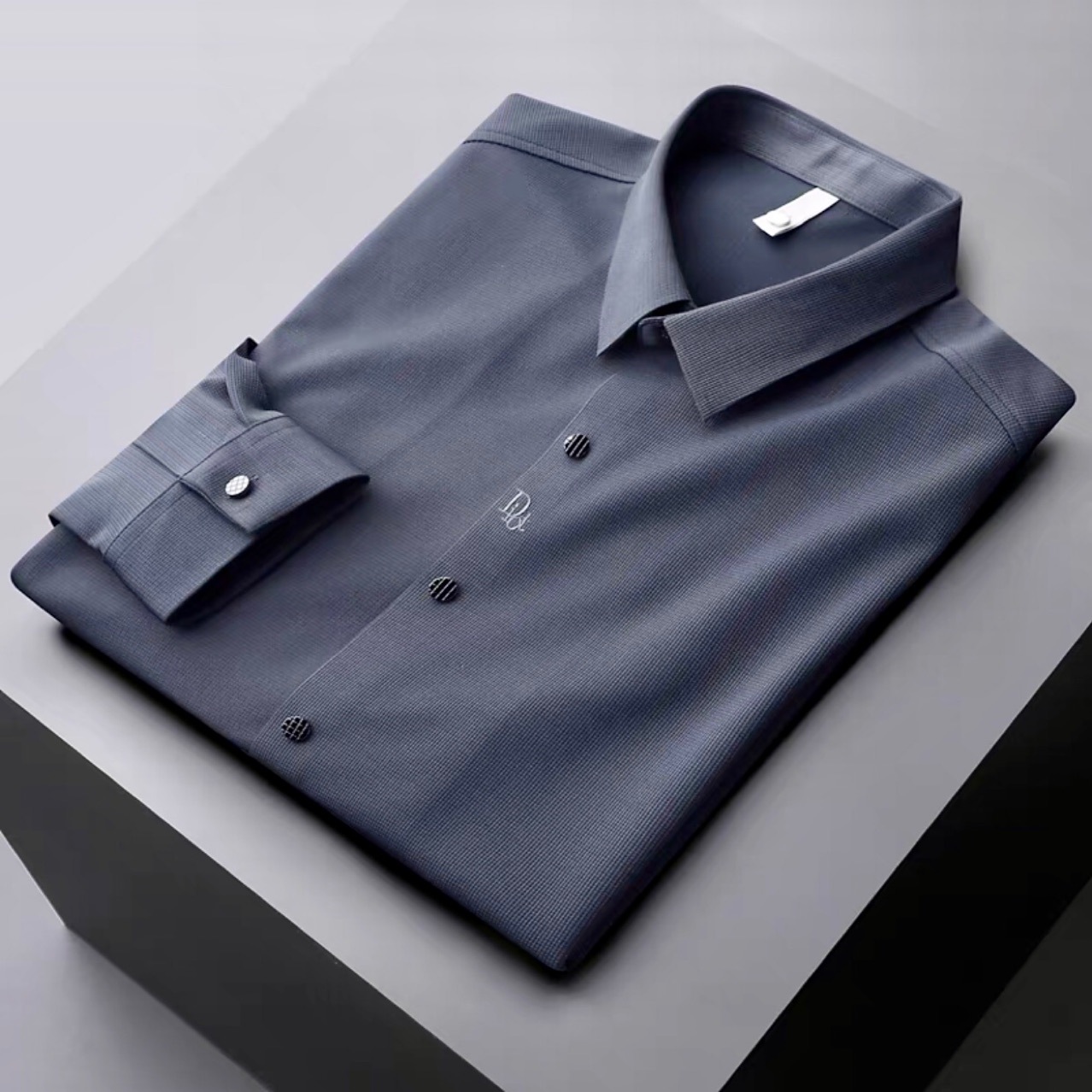 탄성 부드러운 전문 작업 긴 반팔 셔츠 남성용 가을과 겨울 가벼운 비즈니스 추적 자수 셔츠 비 다림질 셔츠 남성용스토어 가기
