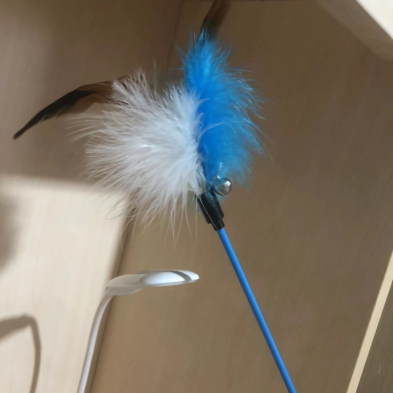 공장 직접 판매 토끼 모피 재미있는 고양이 스틱 모피 공 장난감 양모 스트라이프 재미있는 고양이 스틱 깃털 고양이 장난감 강도 빠는 고양이스토어 가기