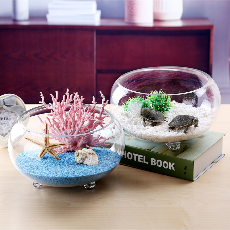 도매 그물 빨강 3 캐치 두꺼운 어항 원형 투명 유리 금붕어 탱크 거실 소형 가정용 탁상 거북이 탱크스토어 가기