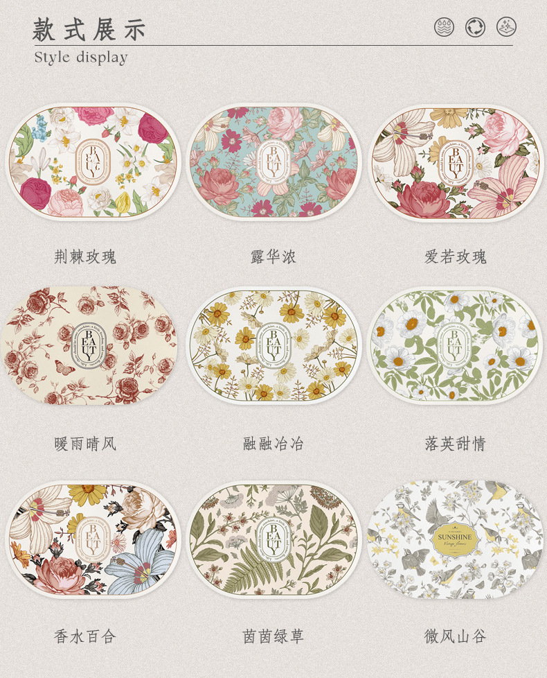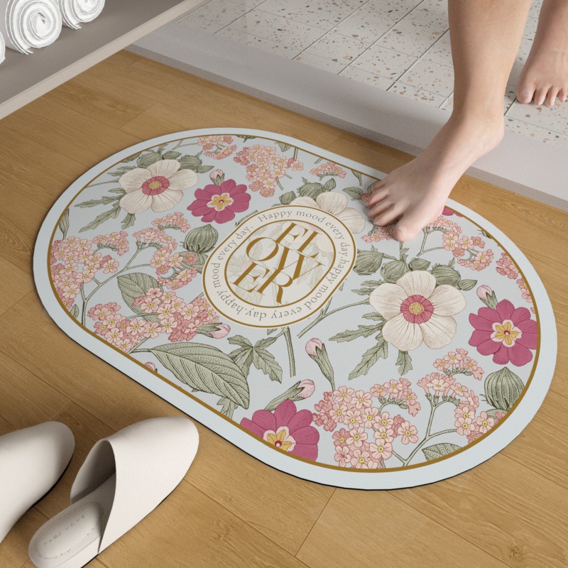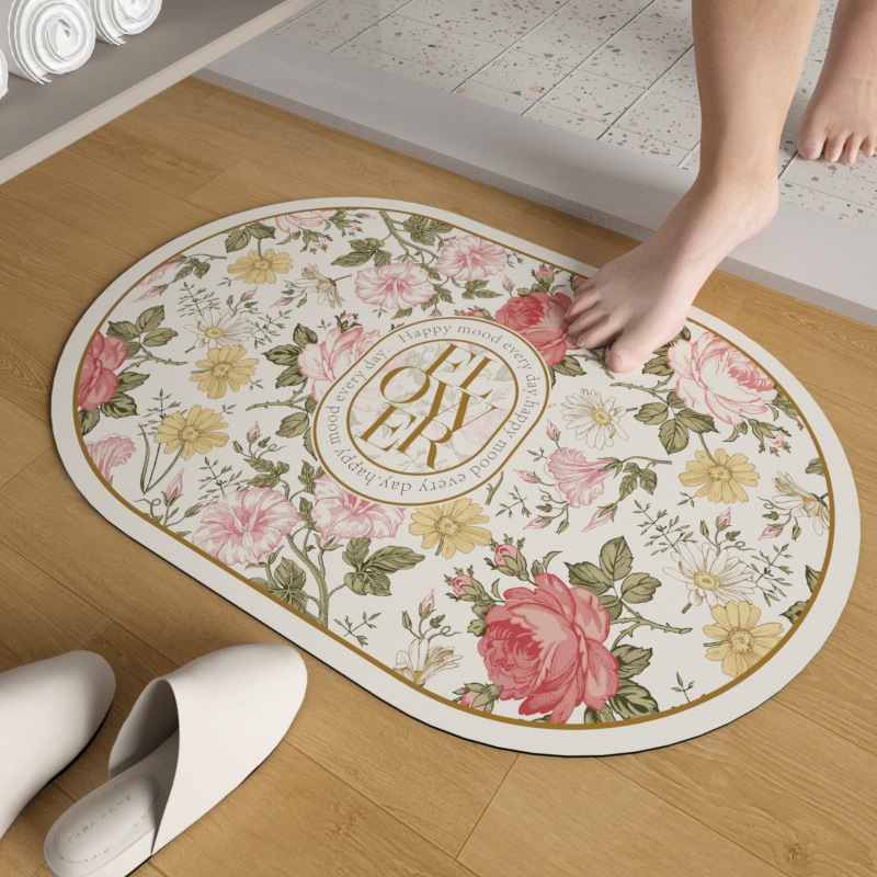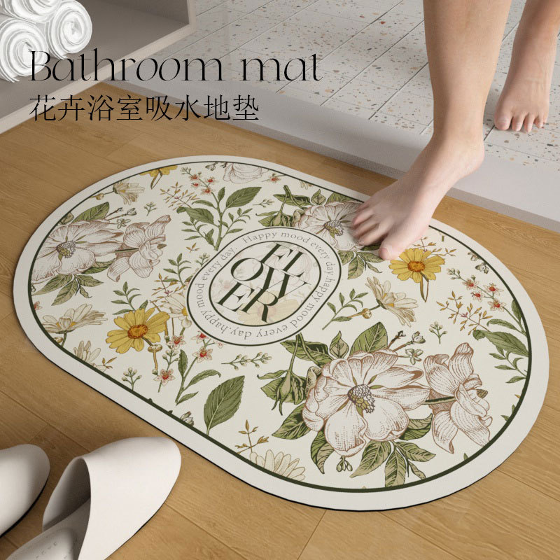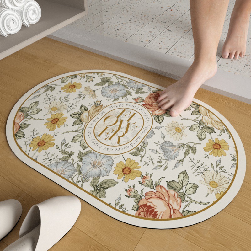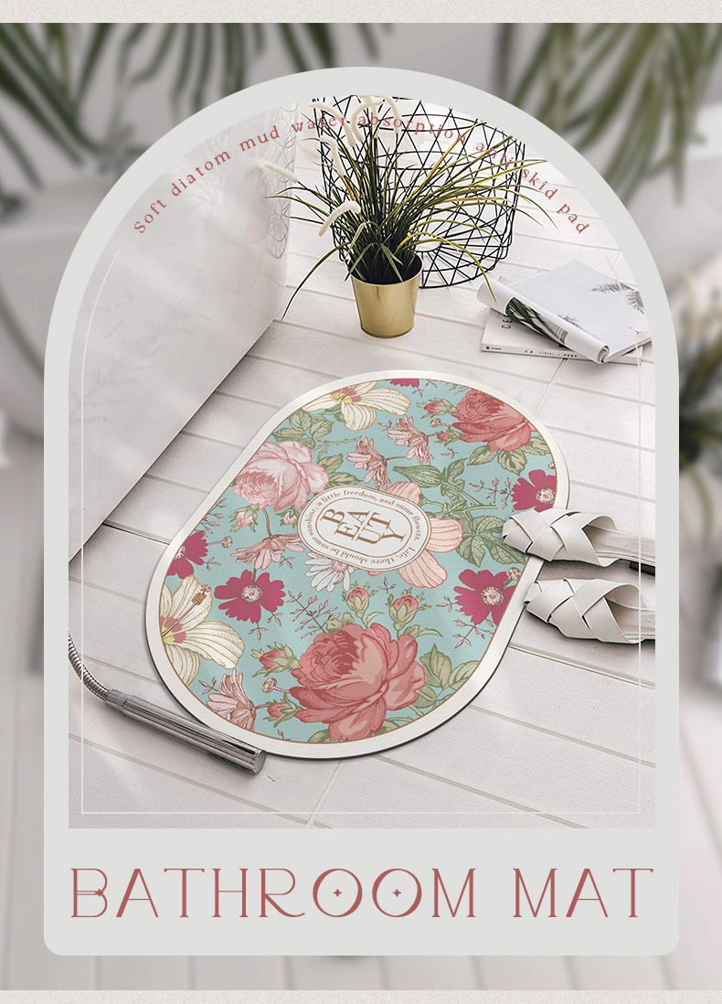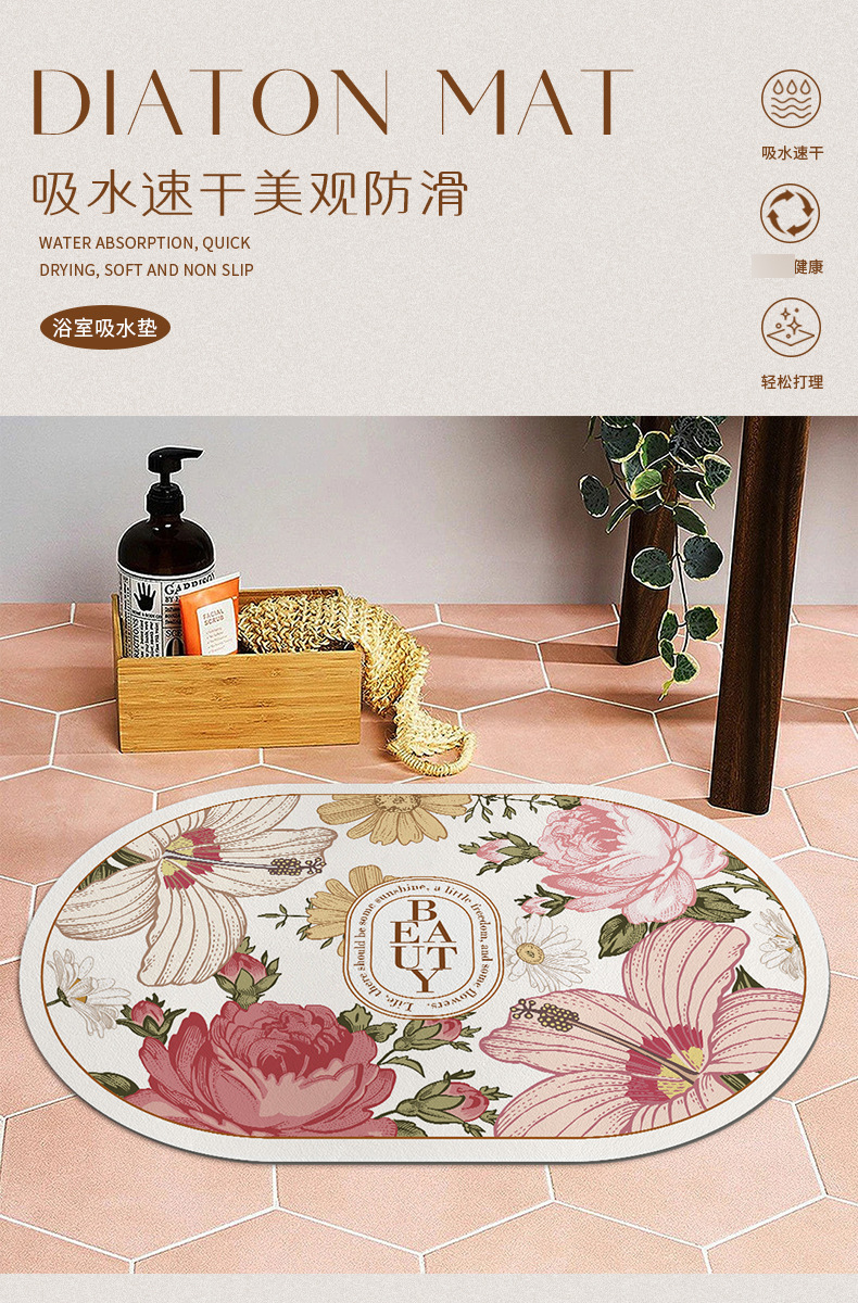레트로 신선한 타원형 흡수성 부드러운 바닥 매트 입구 문 매트 규조토 진흙 흡수성 미끄럼 방지 욕실 화장실 바닥 매트