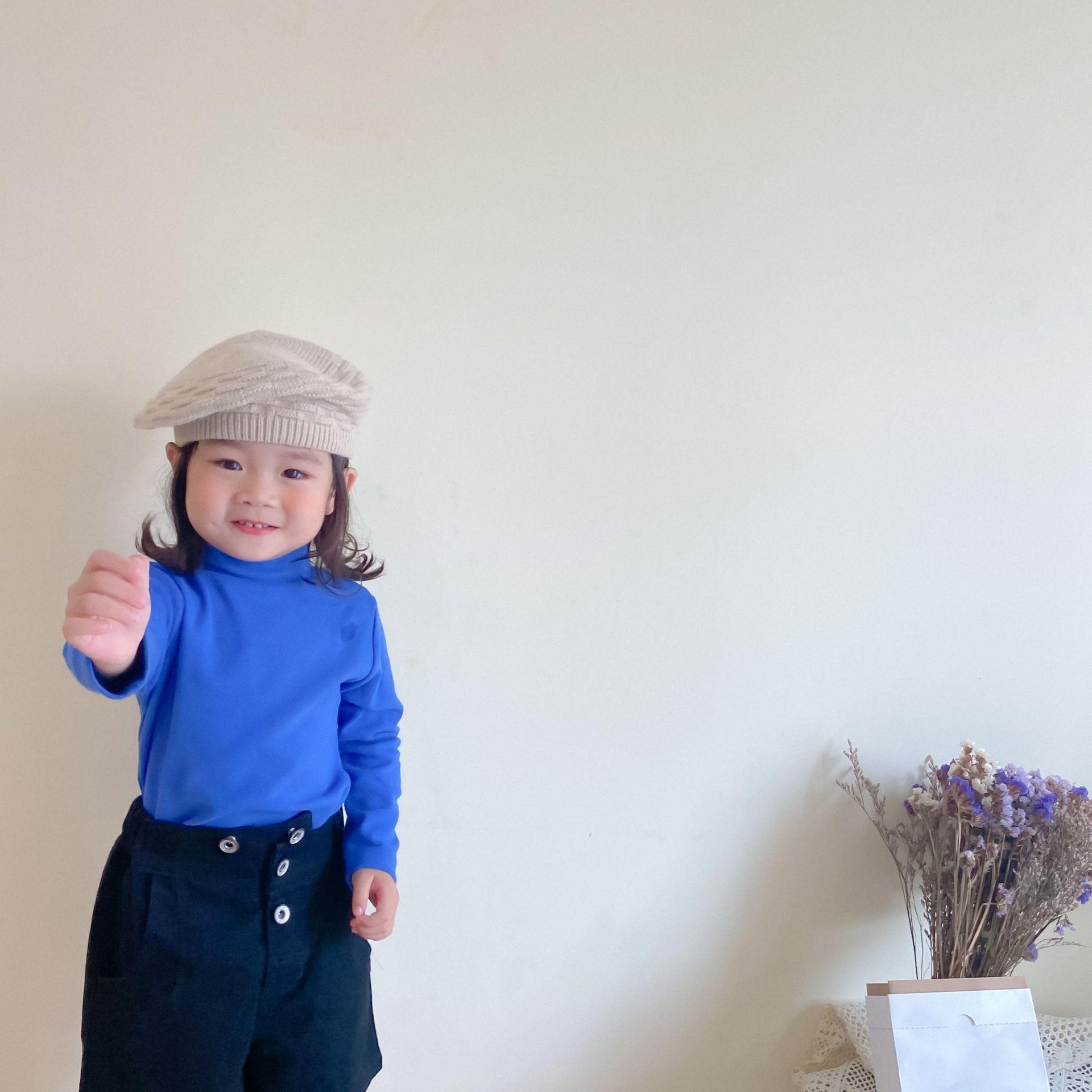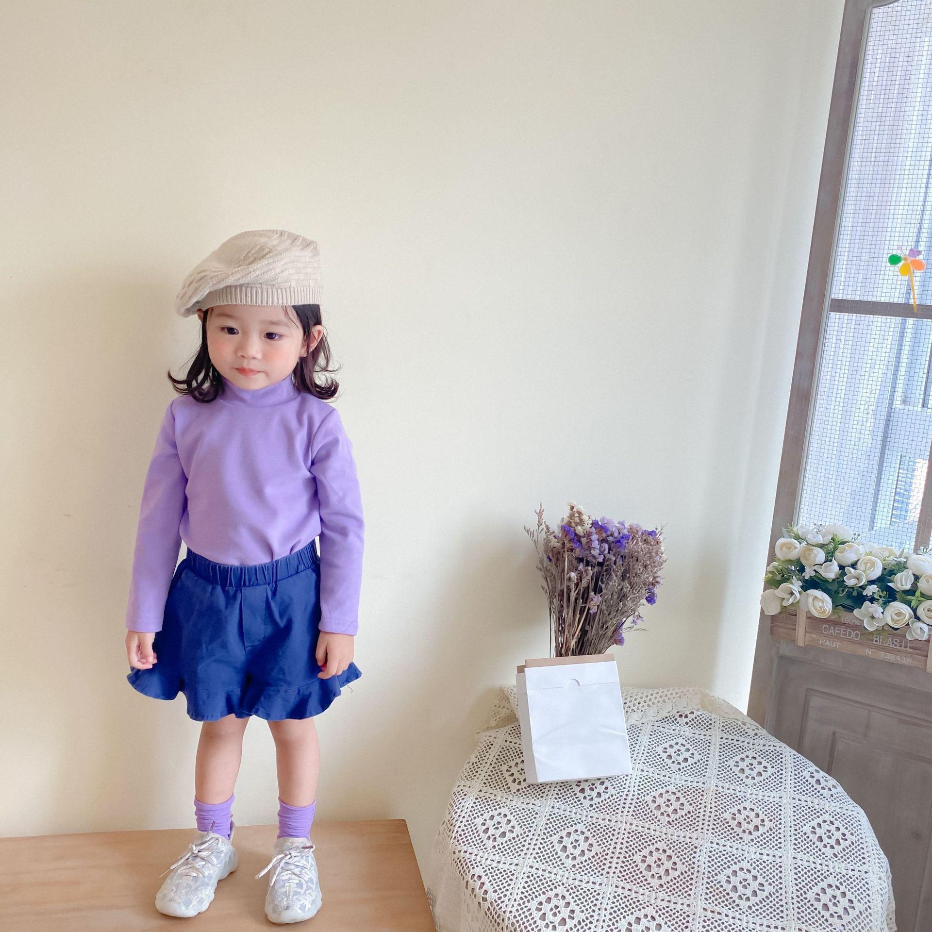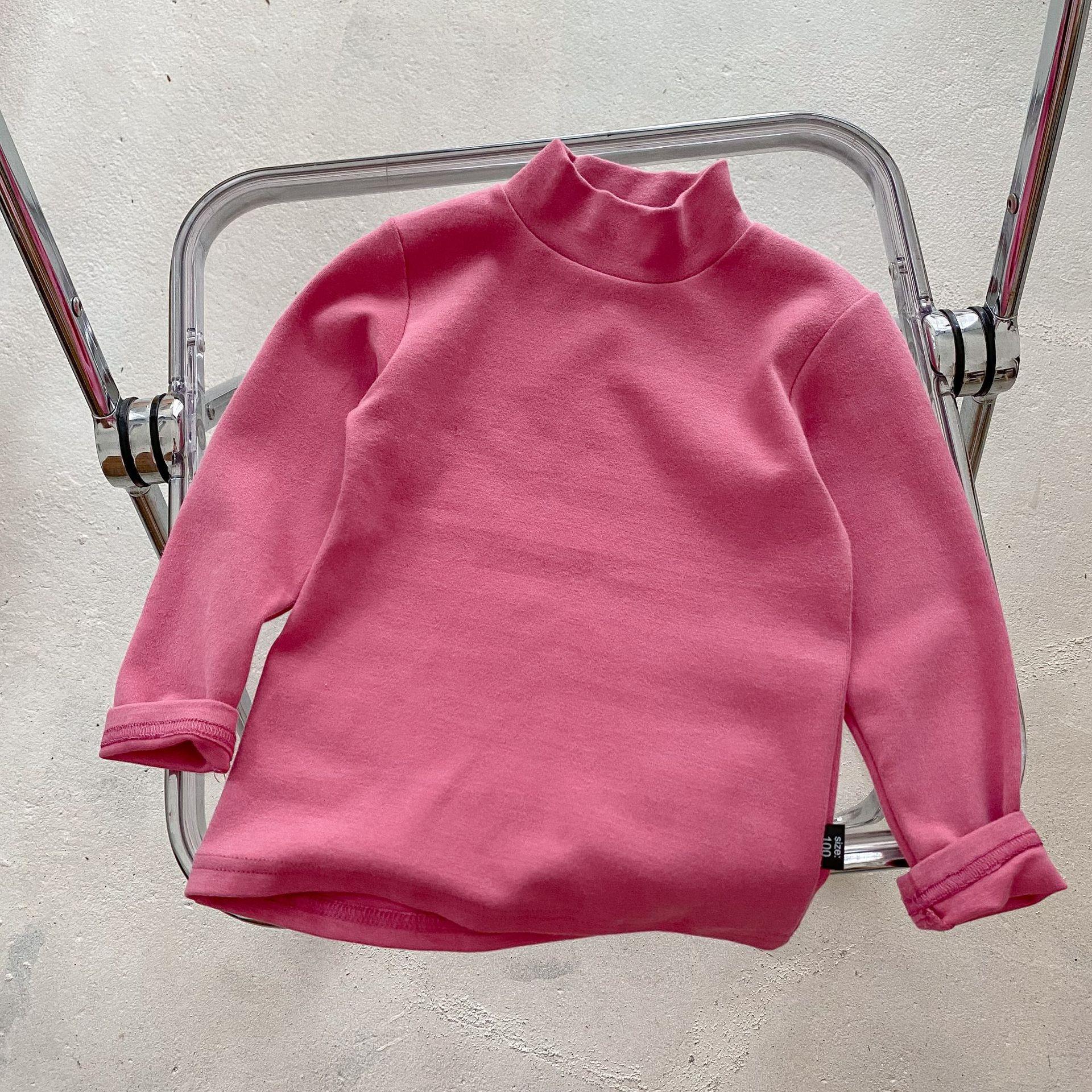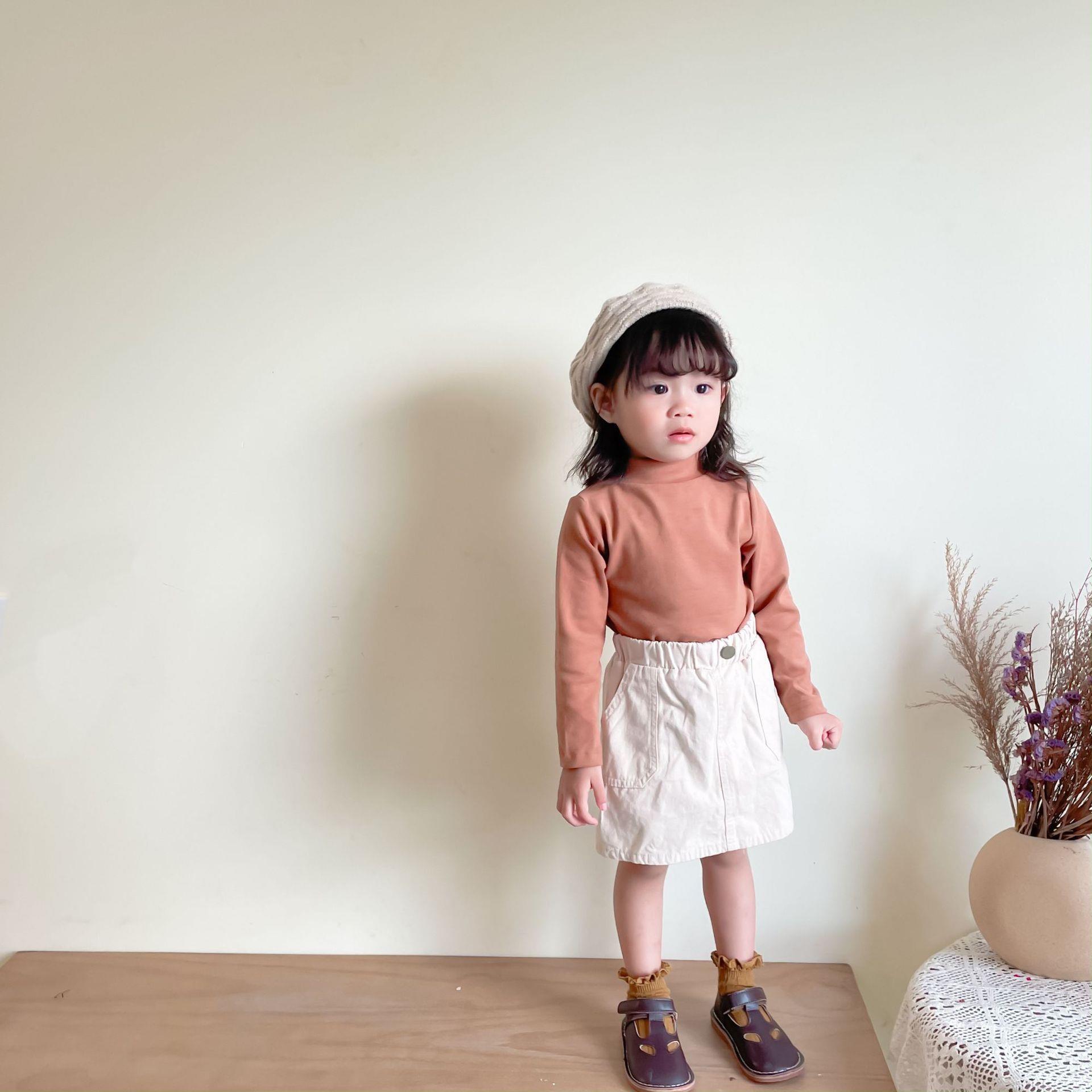 2022 가을 겨울 여아 중간 칼라 베이스 셔츠 남성 아기 한국 단색 하프 하이 칼라 브러시 긴 소매 따뜻한 탑 새로운스토어 가기